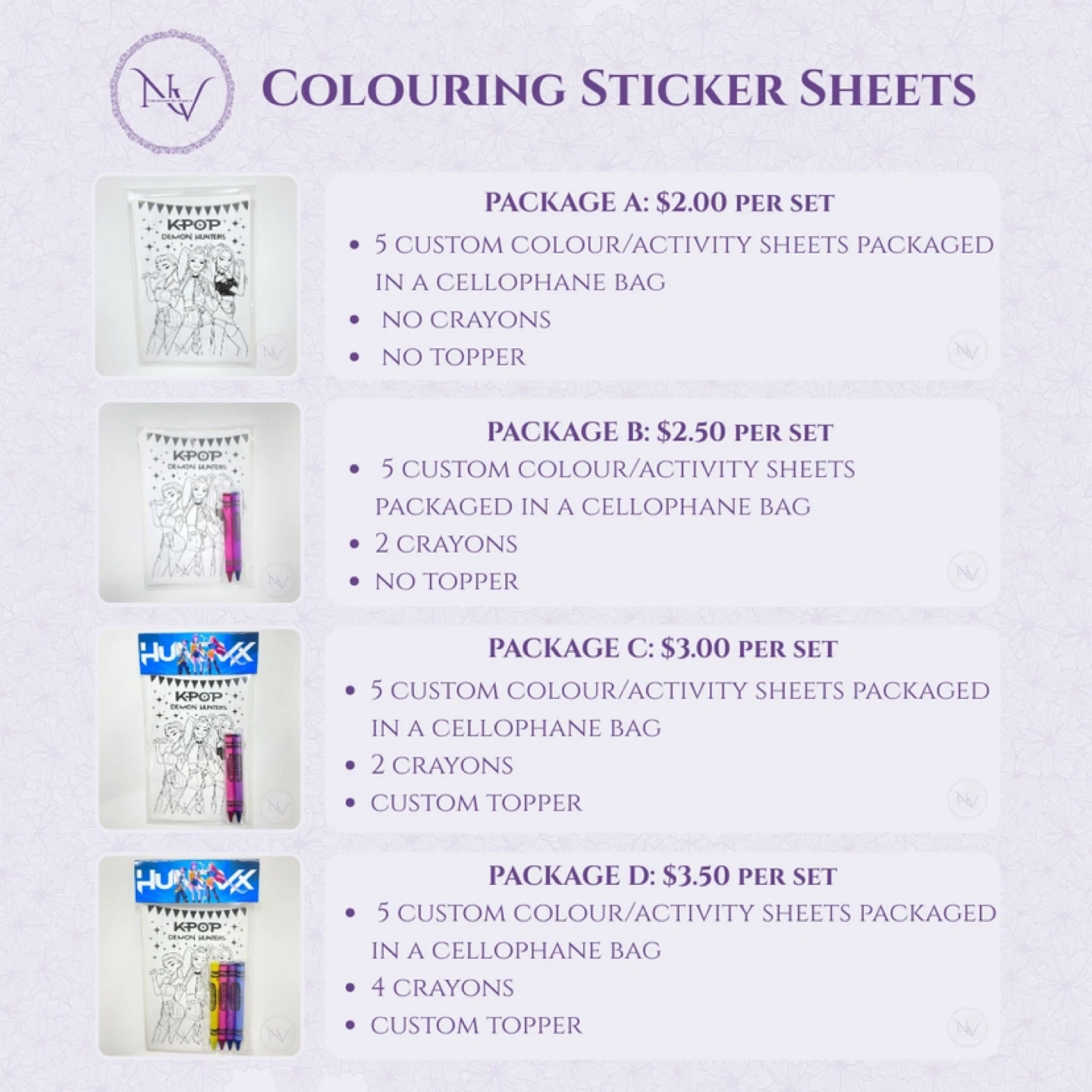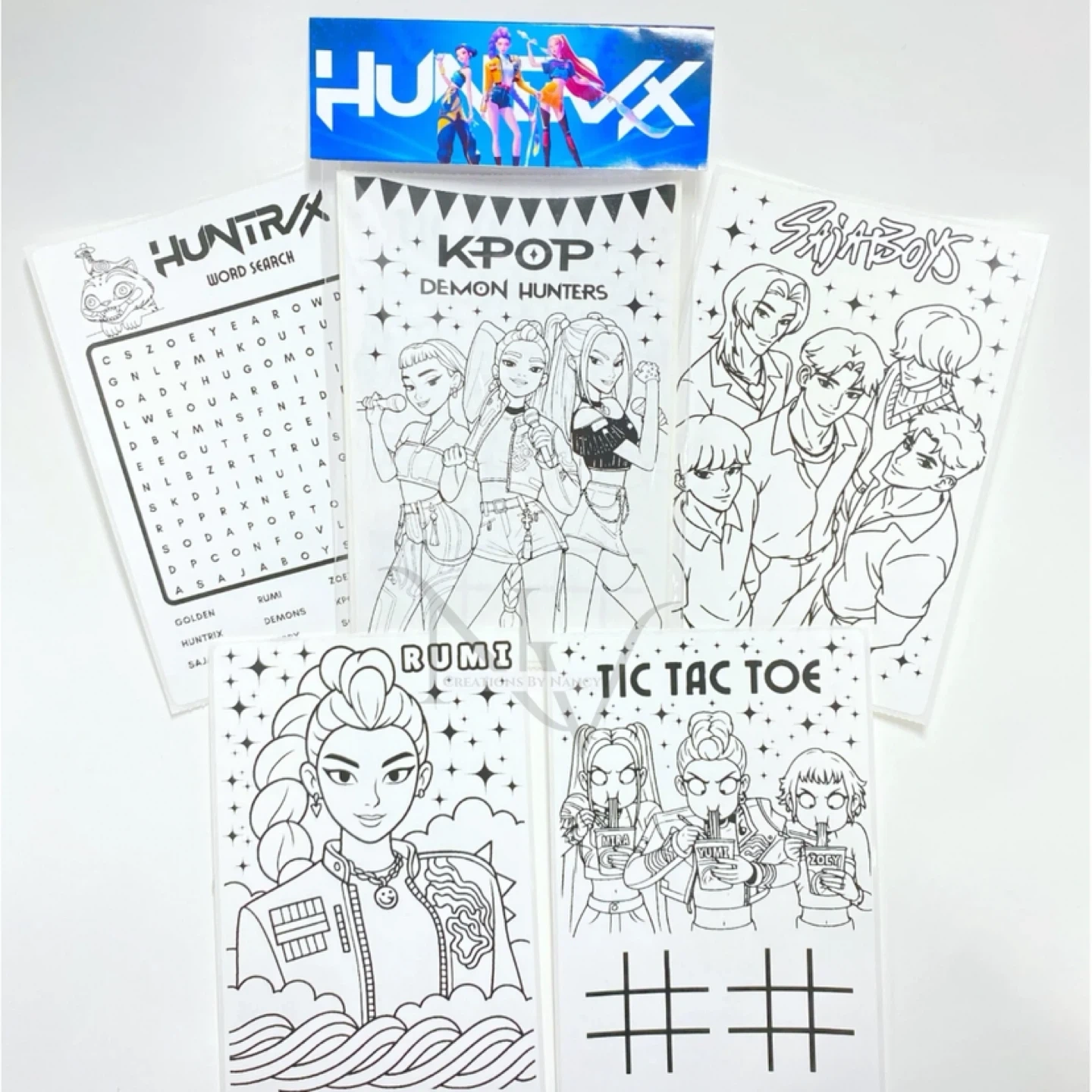 Huntrix Custom Colouring Sticker Sheets Party Favours