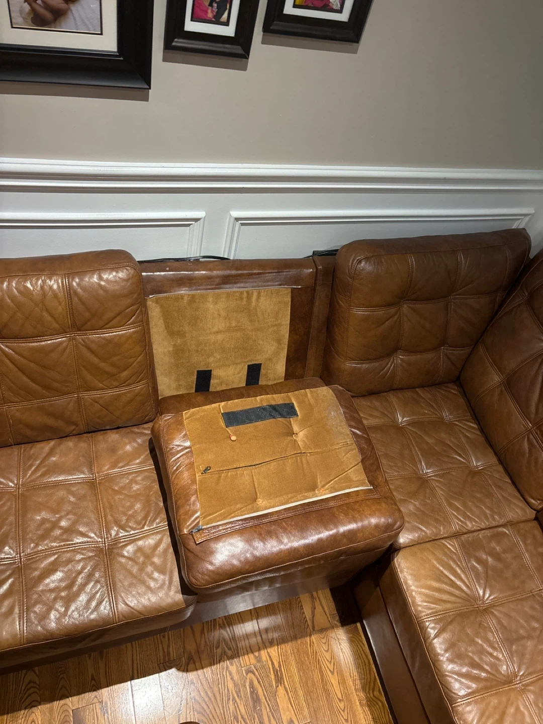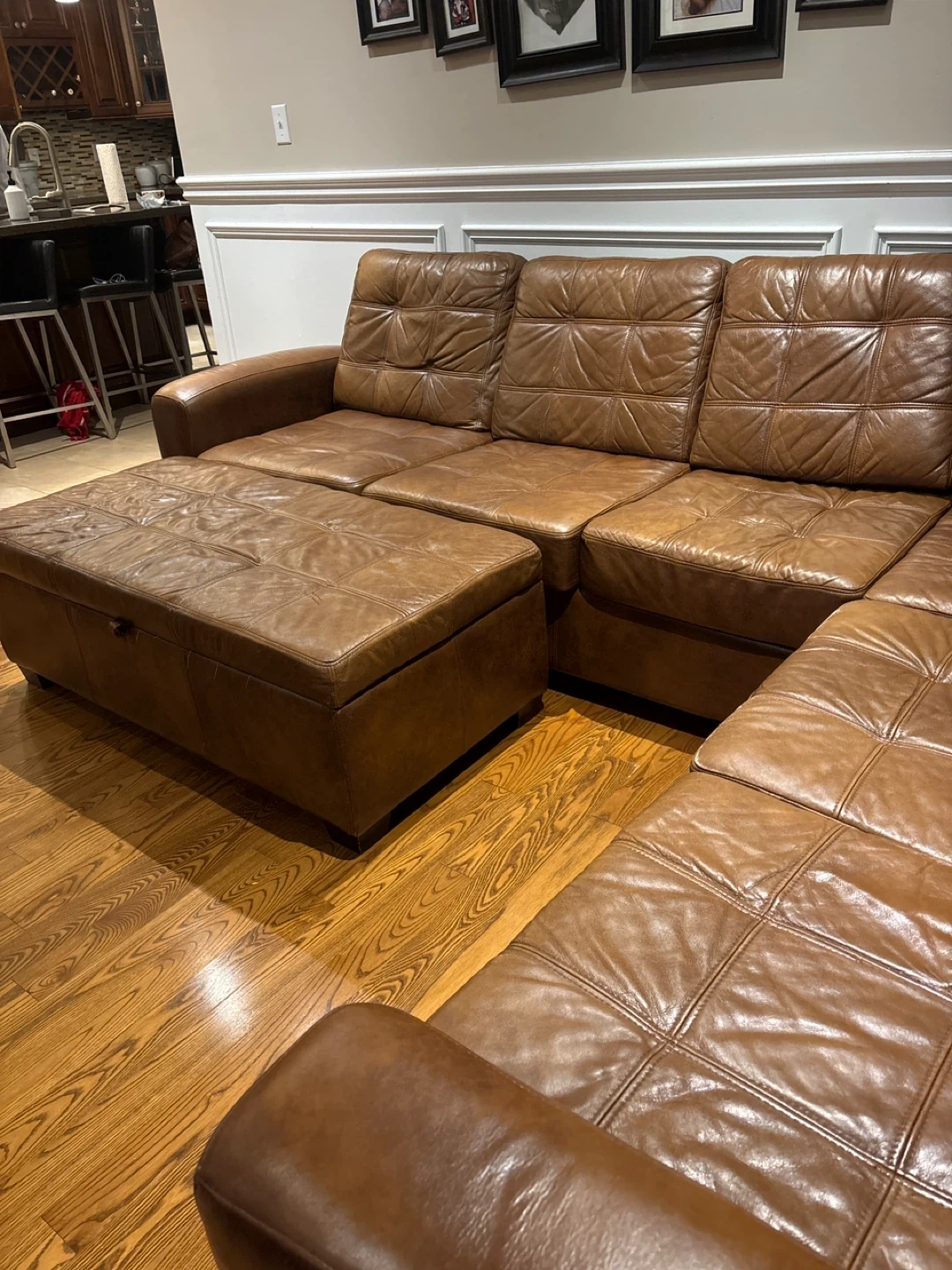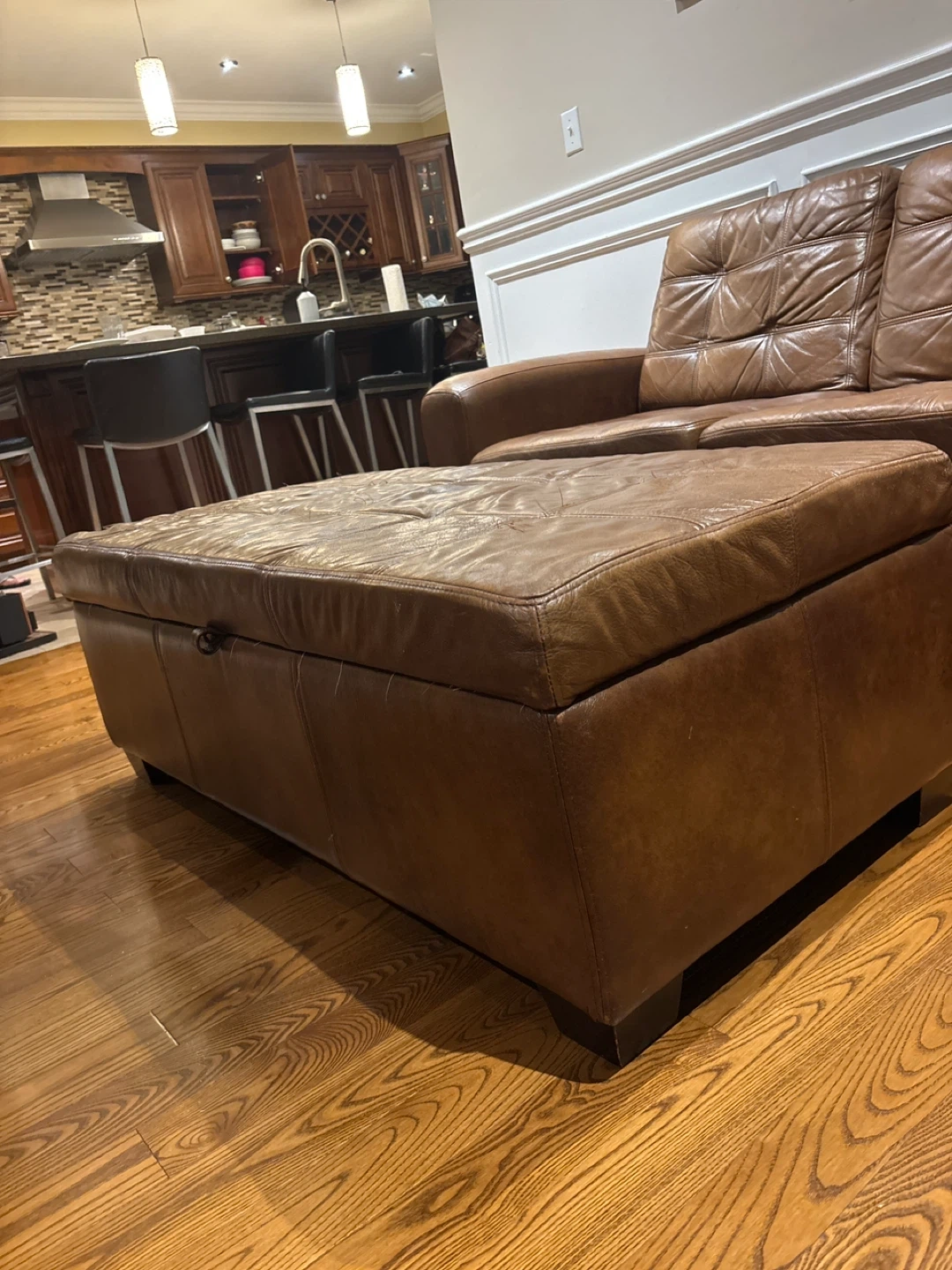 Brown Leather Sectional Sofa with Storage Ottoman