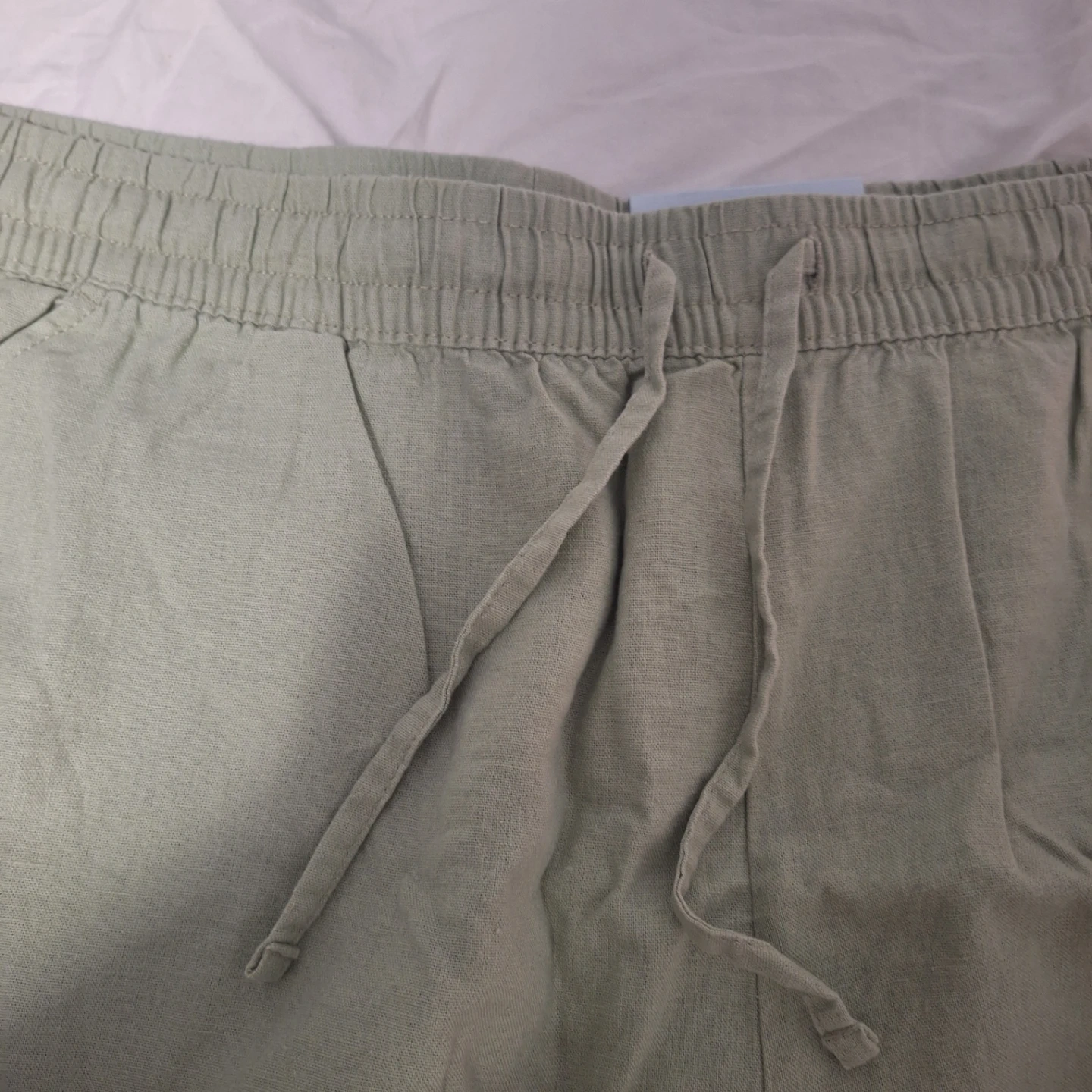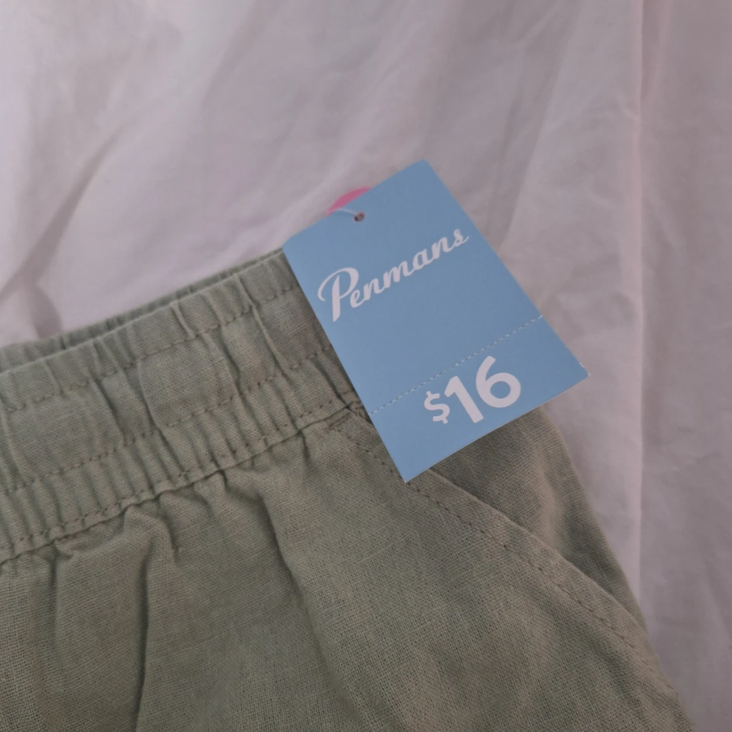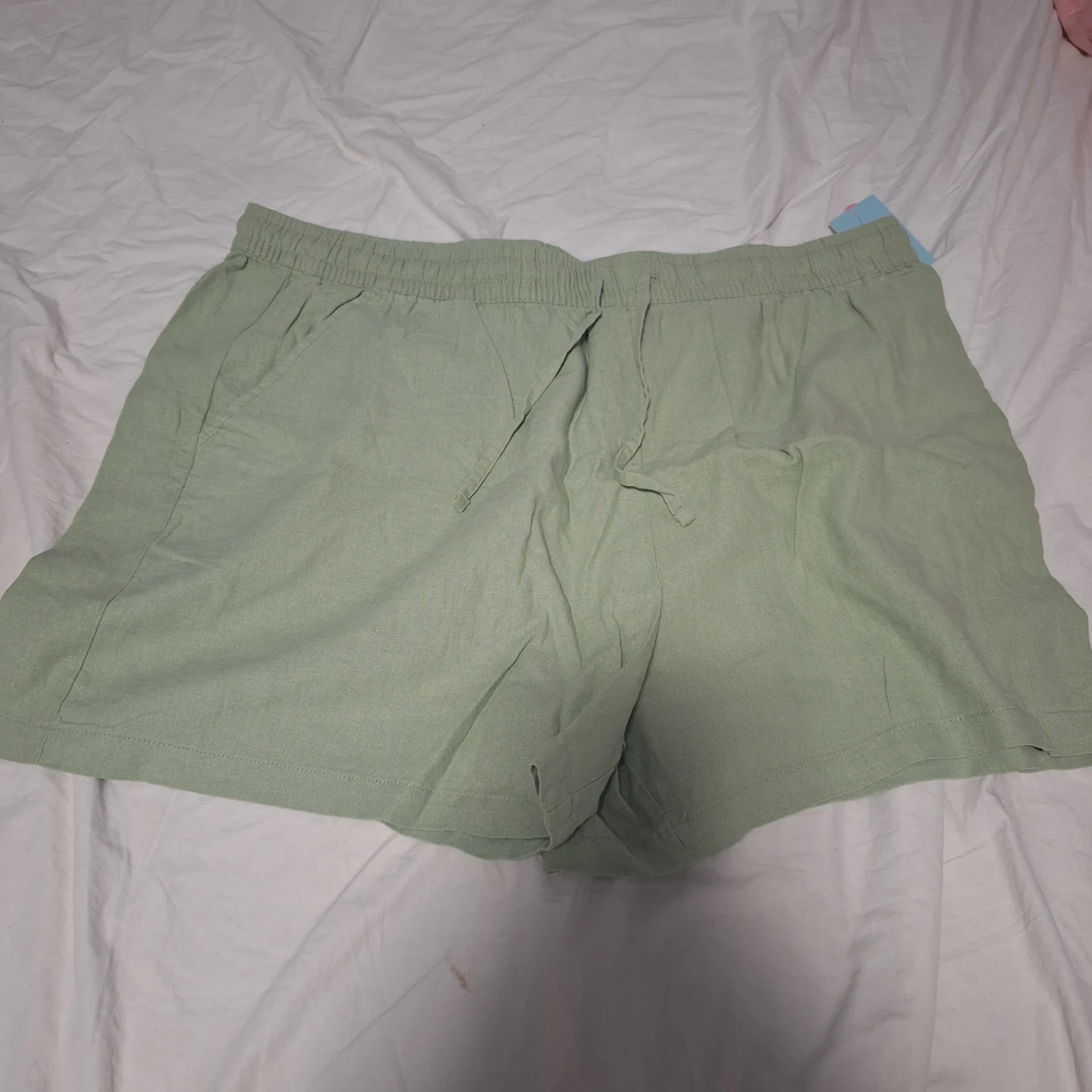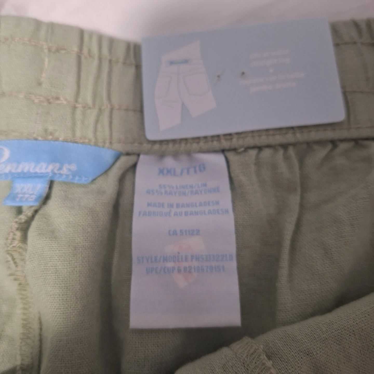 These Penmans shorts are size XXL. They're made with a blend of 55% linen and 45% rayon. They feature an elastic waistband with a drawstring for a comfortable fit.