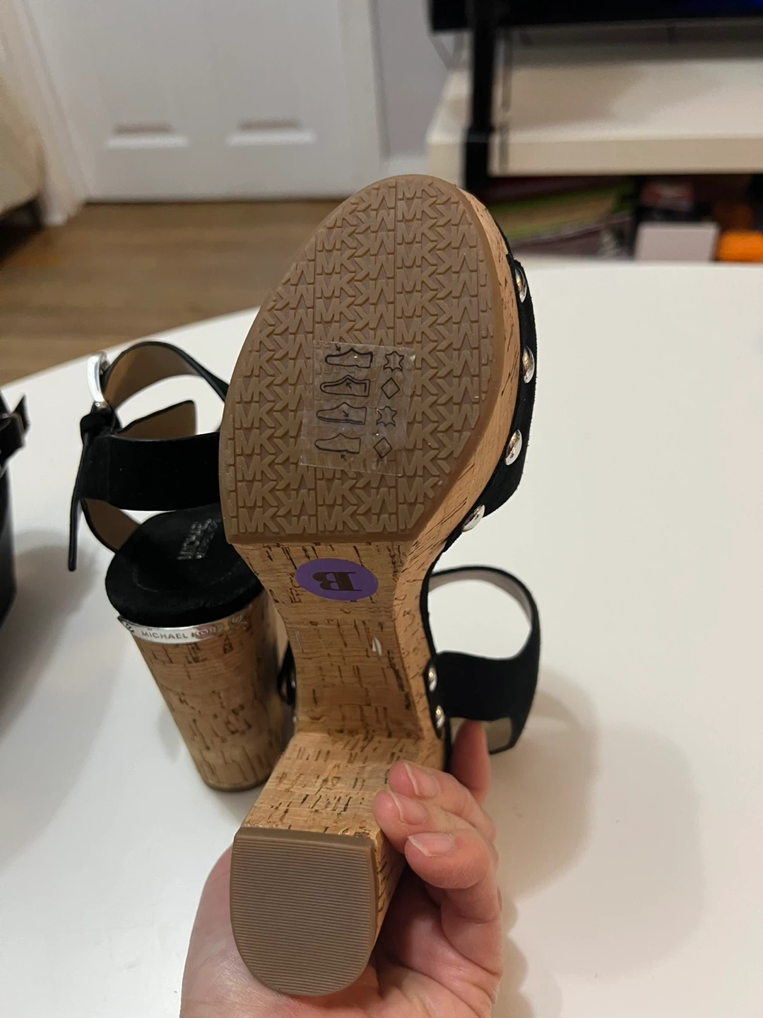Michael Kors Black Suede Cork Wedge Sandals