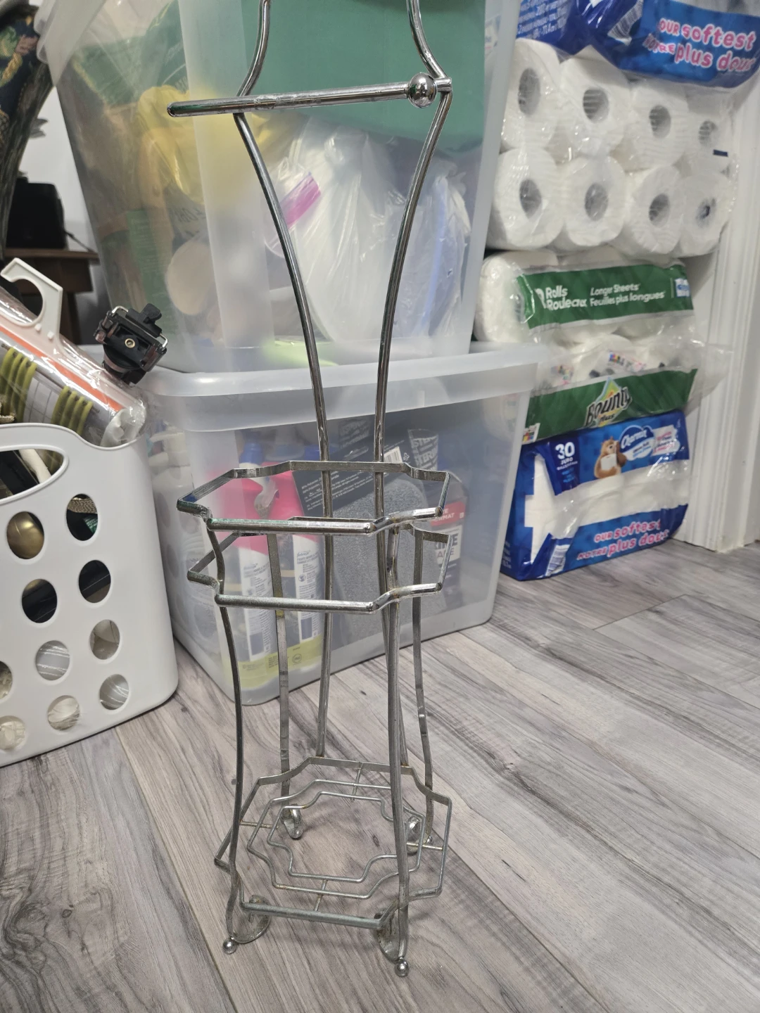 Selling a silver-coloured toilet paper holder. It's in great shape and ready for a new home in your bathroom! Perfect for keeping your toilet paper organized and easily accessible