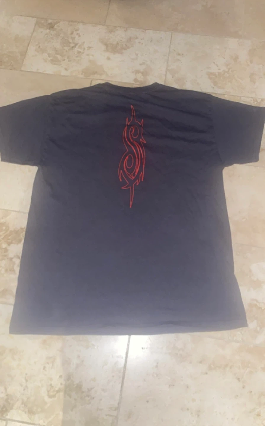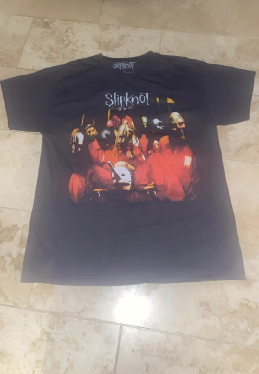 Selling a Slipknot t-shirt in size L. It's made of 100% cotton and has a cool design on the front and back. Machine washable too!