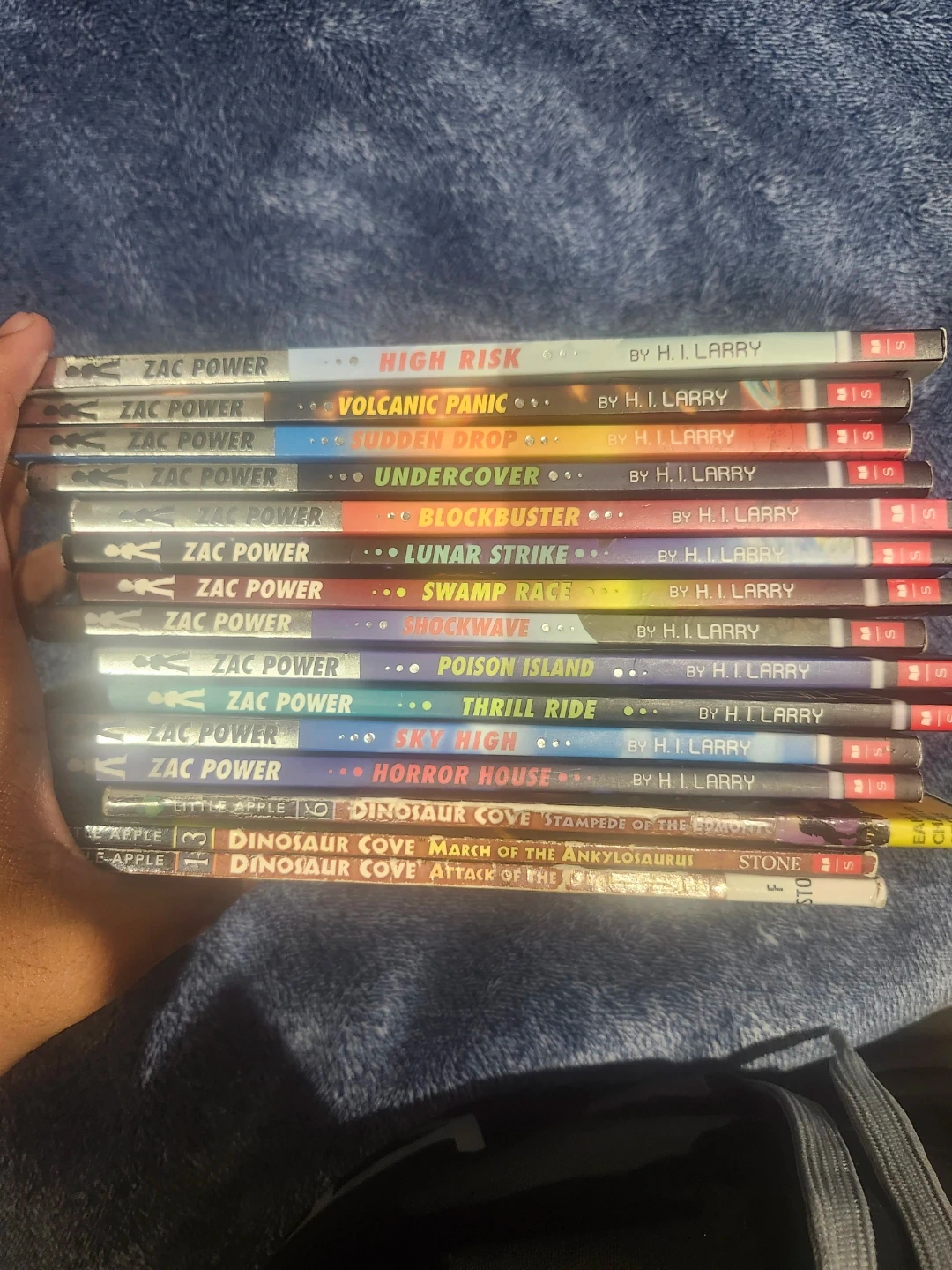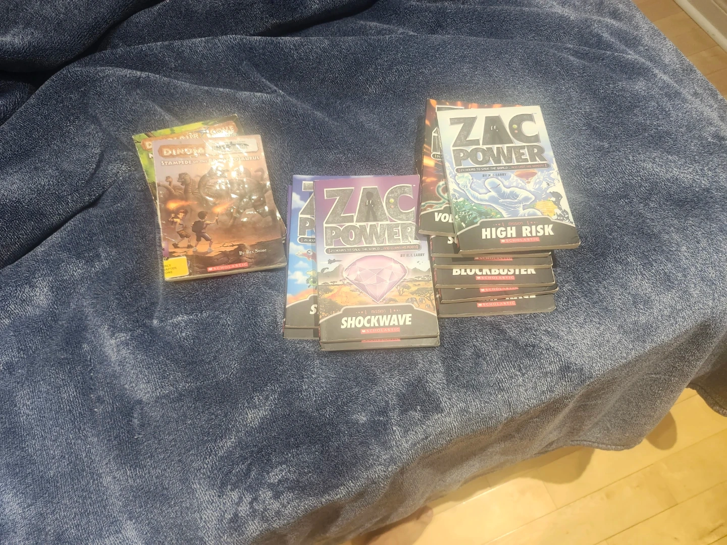 This bundle includes multiple Zac Power adventure books and Dinosaur Cove books. Titles like High Risk, Shockwave, and March of the Ankylosaurus are included. A fun collection for young readers! $5 per book