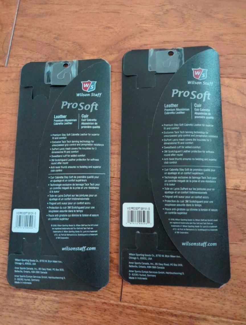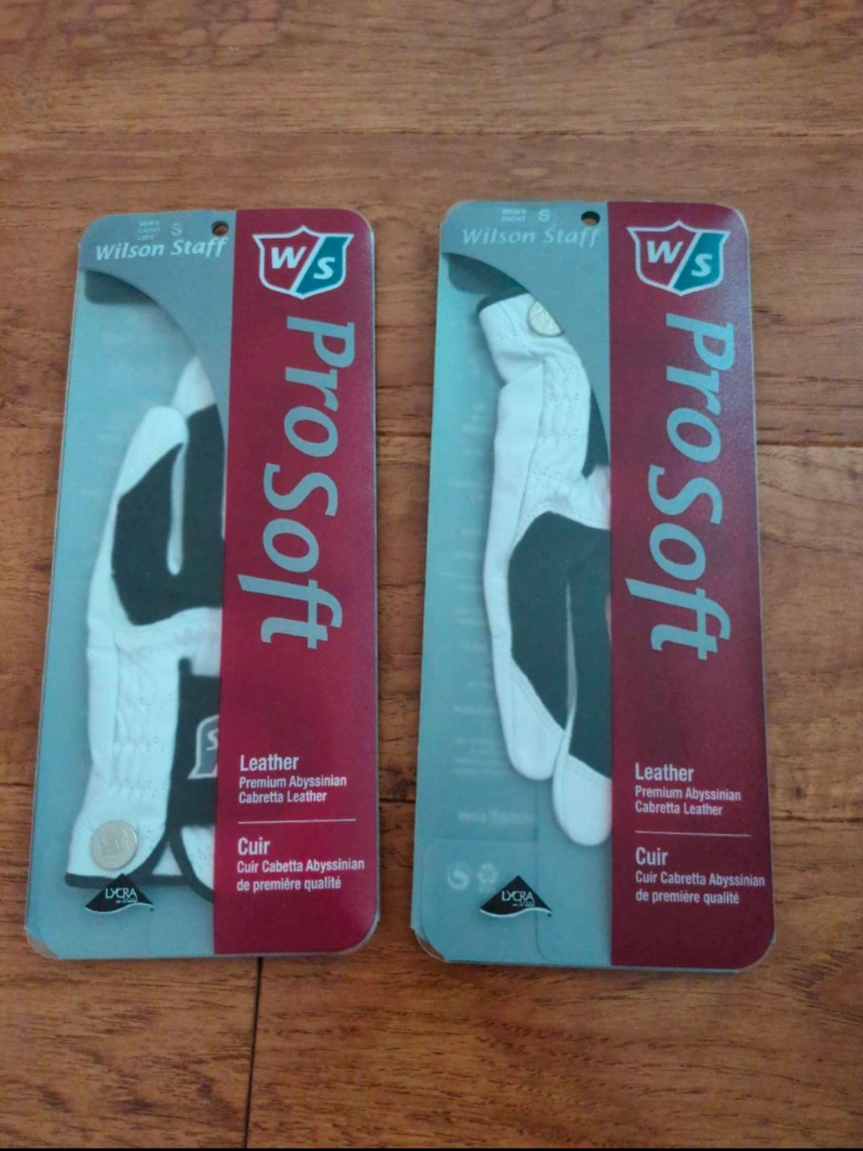 Wilson Staff ProSoft leather golf gloves, brand new in original packaging.