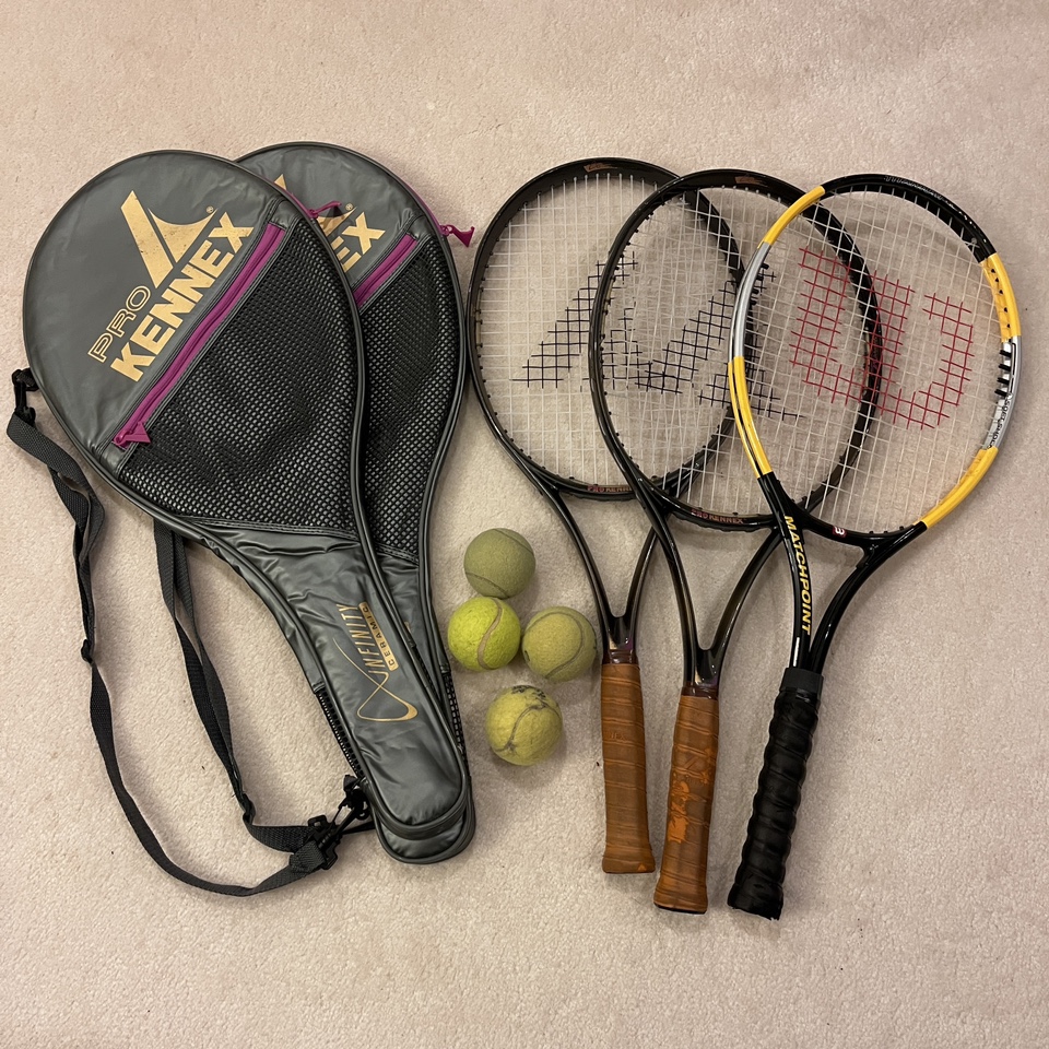 - 3 tennis rackets