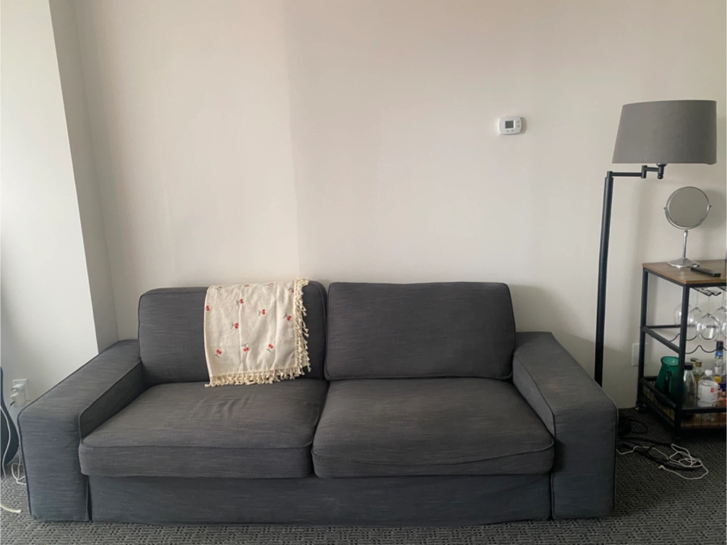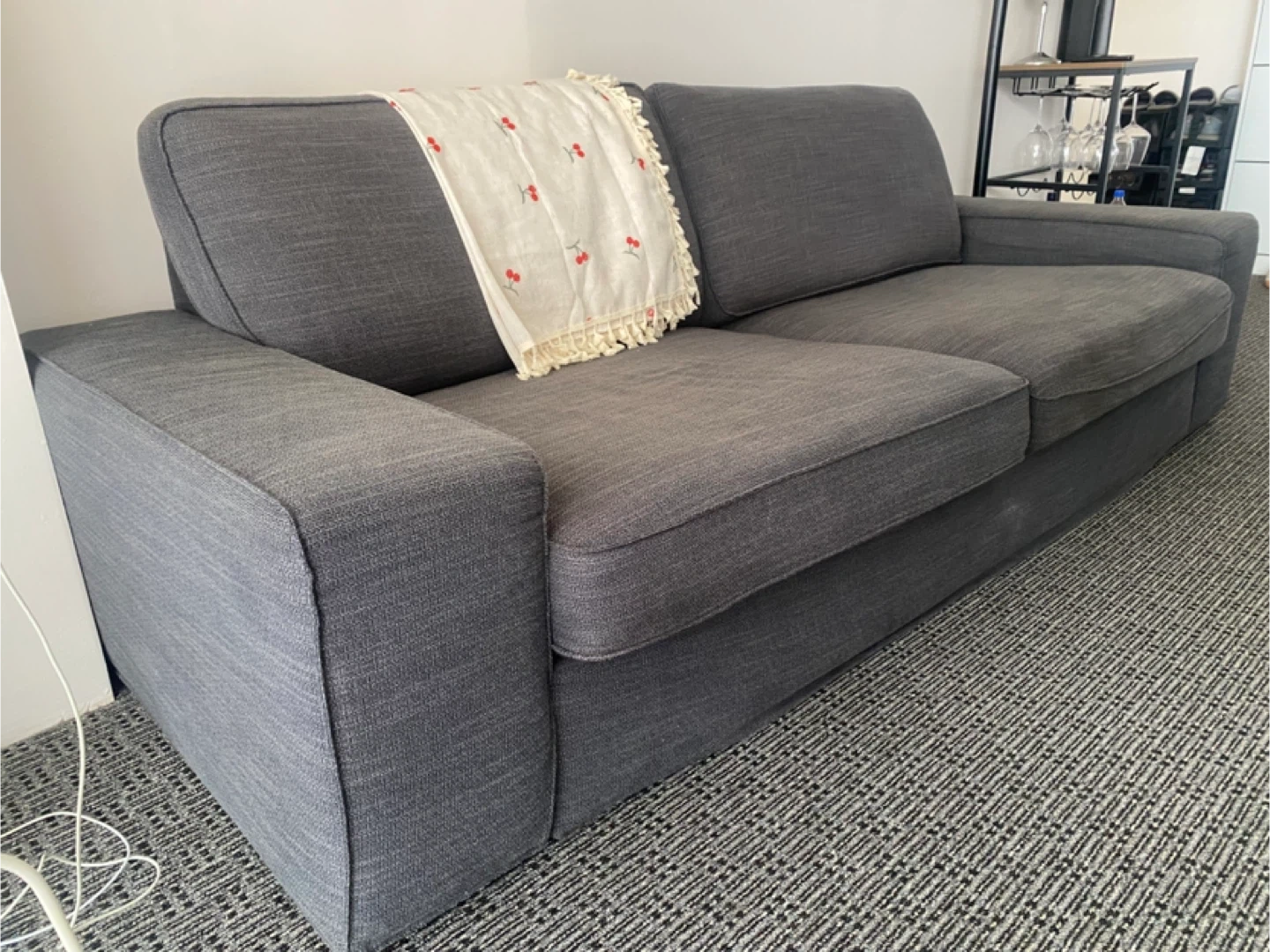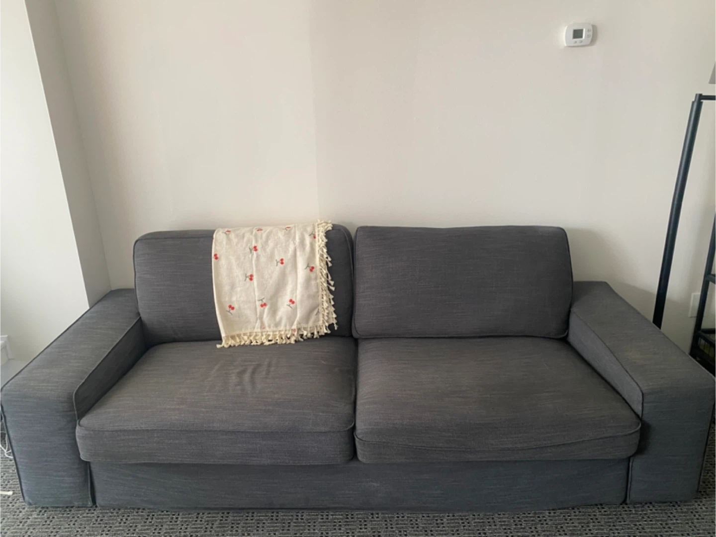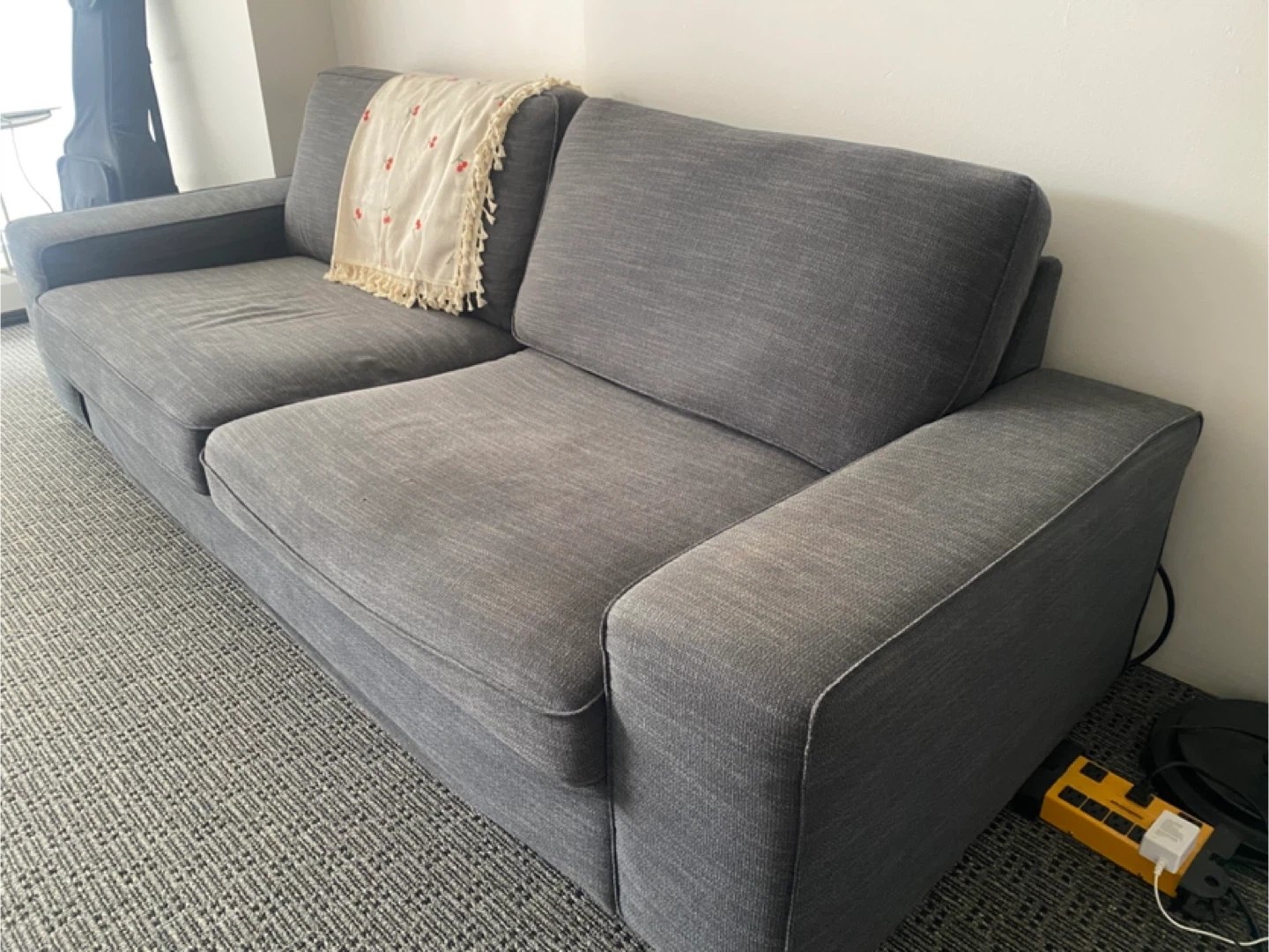 a comfy grey sofa two seats. It's perfect for a living room. Still good conditions and Pick up only. It's heavy one so need a car to transfer.