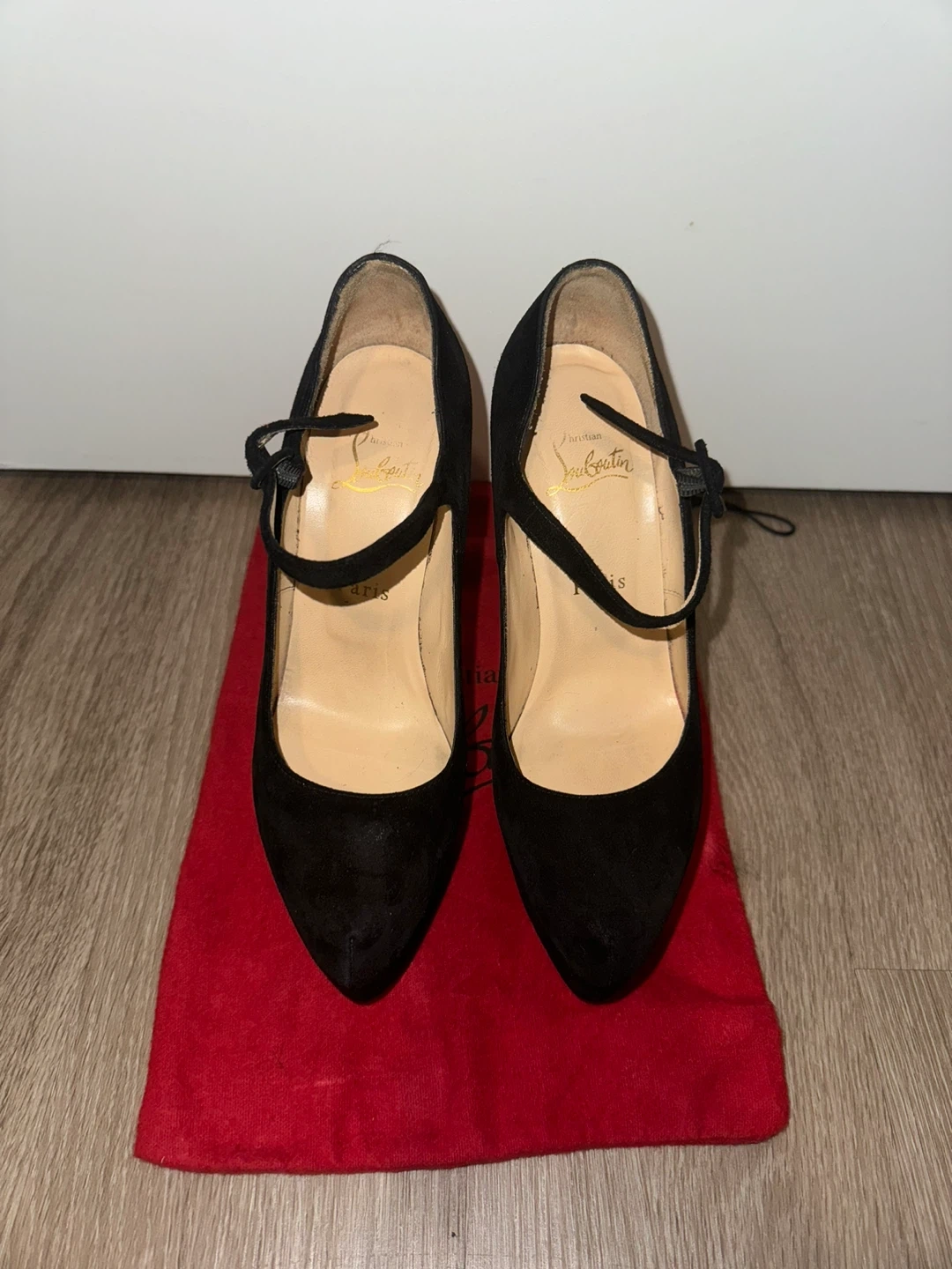 Christian Louboutin Black Suede Lady Daf 160 Platform Pumps Heels