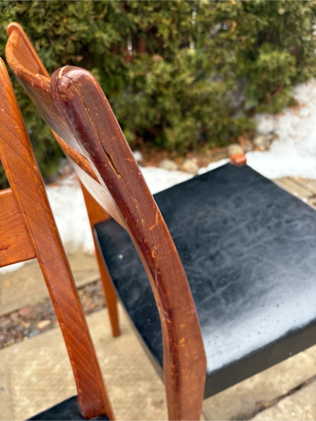 Includes 5 chairs thst are in good vintage condition, and the 6th chair has been repaired, but is structurally sound. Price is for the whole set.