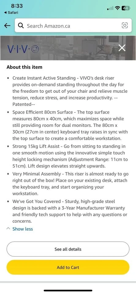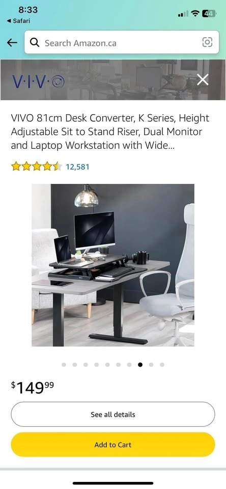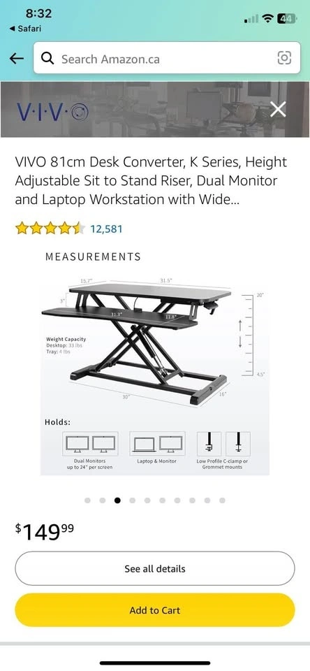 LIKE NEW - Fully functional. Welcome to see the item before purchase. VIVO 81cm Desk Converter, K Series, Height Adjustable Sit to Stand Riser, Dual Monitor and Laptop Workstation with Wide Keyboard Tray. Retails $150 +tax, asking $75. Location: DOWNTOWN TORONTO, Queens Quay and Bathurst. Please mention when you can come (date and hour) when you text.