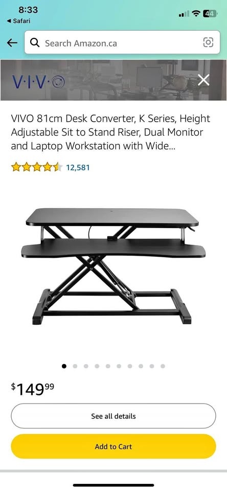 LIKE NEW - Fully functional. Welcome to see the item before purchase. VIVO 81cm Desk Converter, K Series, Height Adjustable Sit to Stand Riser, Dual Monitor and Laptop Workstation with Wide Keyboard Tray. Retails $150 +tax, asking $75. Location: DOWNTOWN TORONTO, Queens Quay and Bathurst. Please mention when you can come (date and hour) when you text.