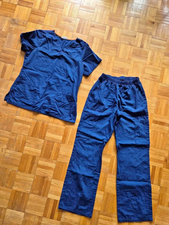 Xs scrub top and bottoms set. Bottoms have multiple pockets and top has two front pockets. Washed and ready for pick up. Must pickup as I do not have a vehicle. Pick up locationnis 57 union st east in waterloo.