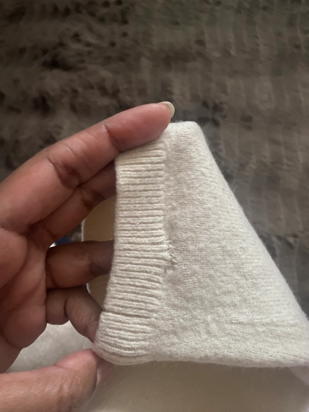Pre-owned with light wear. A couple of small repaired spots typical for delicate cashmere, but still very soft and wearable.