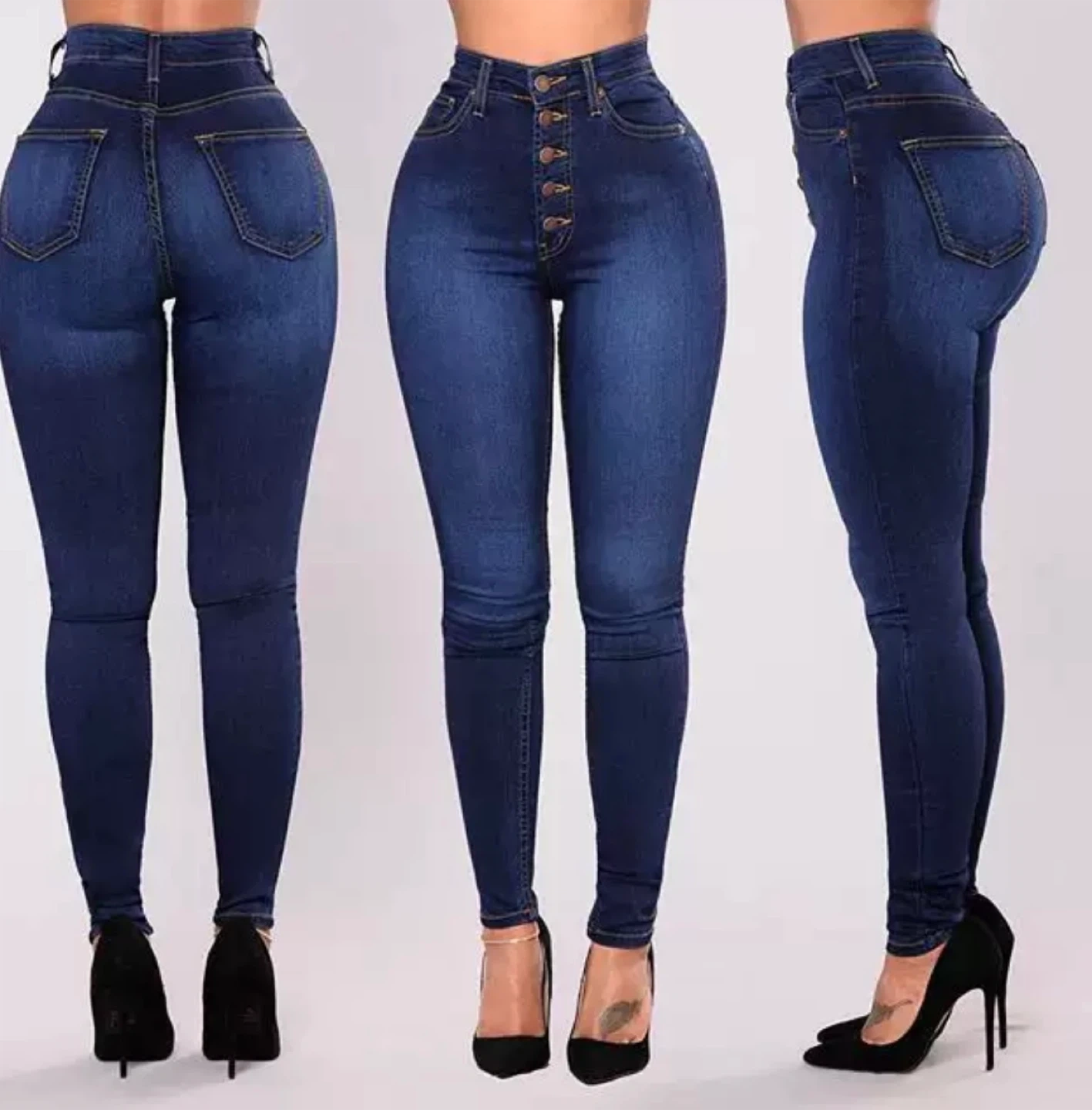 These dark wash skinny jeans feature a flattering high-rise and a stylish button-fly closure. They're made from a comfortable stretch denim blend for a perfect fit. The slim silhouette hugs your legs from hip to ankle. Great for dressing up or down!
