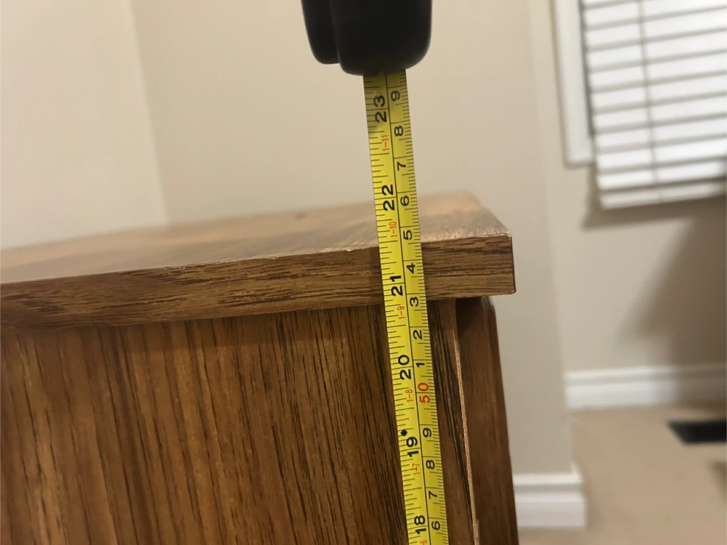 This is a wooden nightstand with two drawers. It's made in Canada. The dimensions are approximately 22 inches wide, 22 inches high, and 17 inches deep.