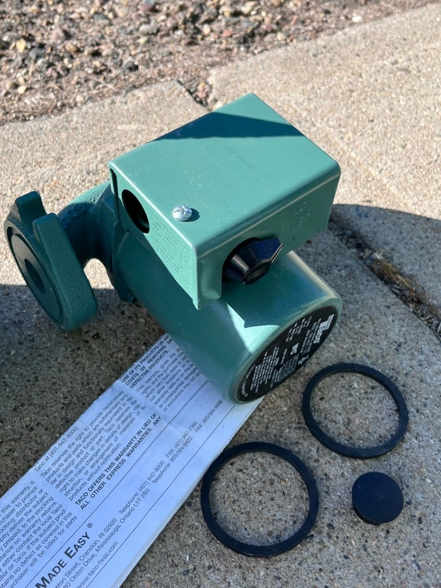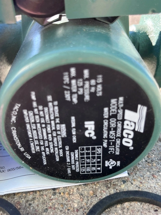 Offering a Taco 00R-MSF1-1IFC Multi-Speed Cartridge Circulator Water Pump, great for hydronic heating. This pump is designed for efficient water circulation in residential and light commercial applications. Two available. Key features include: Multi-speed operation for customized performance, durable construction for long-lasting use, and a compact design for easy installation. Model: 00R-MSF1-1IFC. This is new and unused, though the box has seen better days. Looking at similar items, I estimate the value to be around $150.00 CAD. I've priced it to sell! If the ad is up, it's still available. Cash accepted.