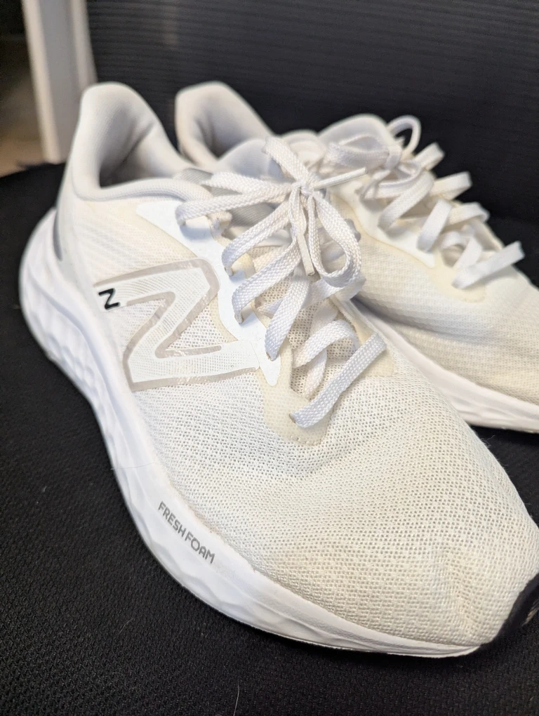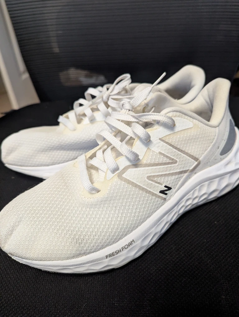 Selling a pair of New Balance Fresh Foam Arishi v4 men's running shoes in white. They feature Fresh Foam cushioning, making them lightweight and comfortable for running or everyday wear. Great for anyone looking for a stylish and supportive running shoe!