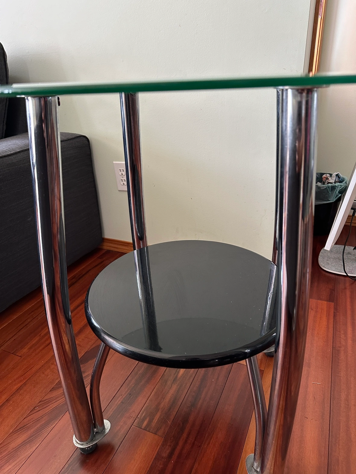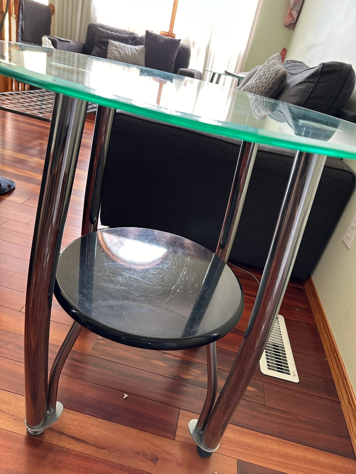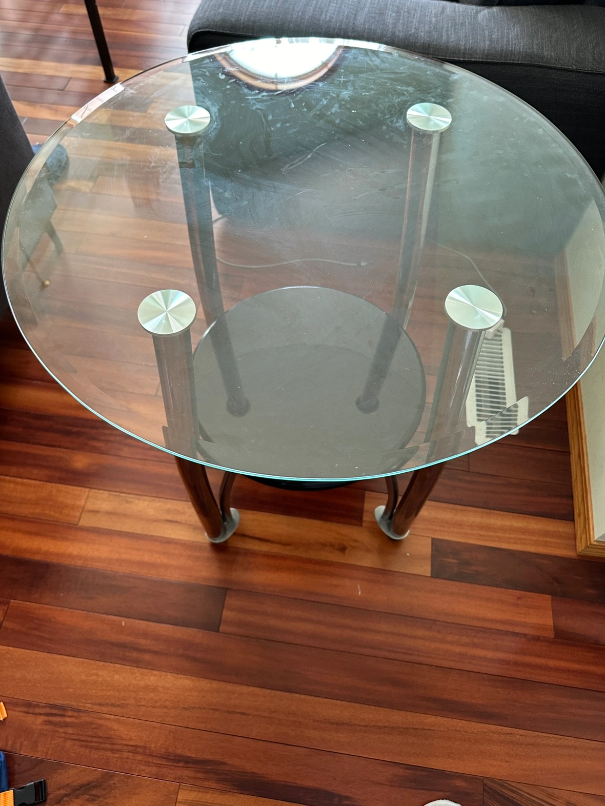 Pair of round glass tables in good condition. For sale!