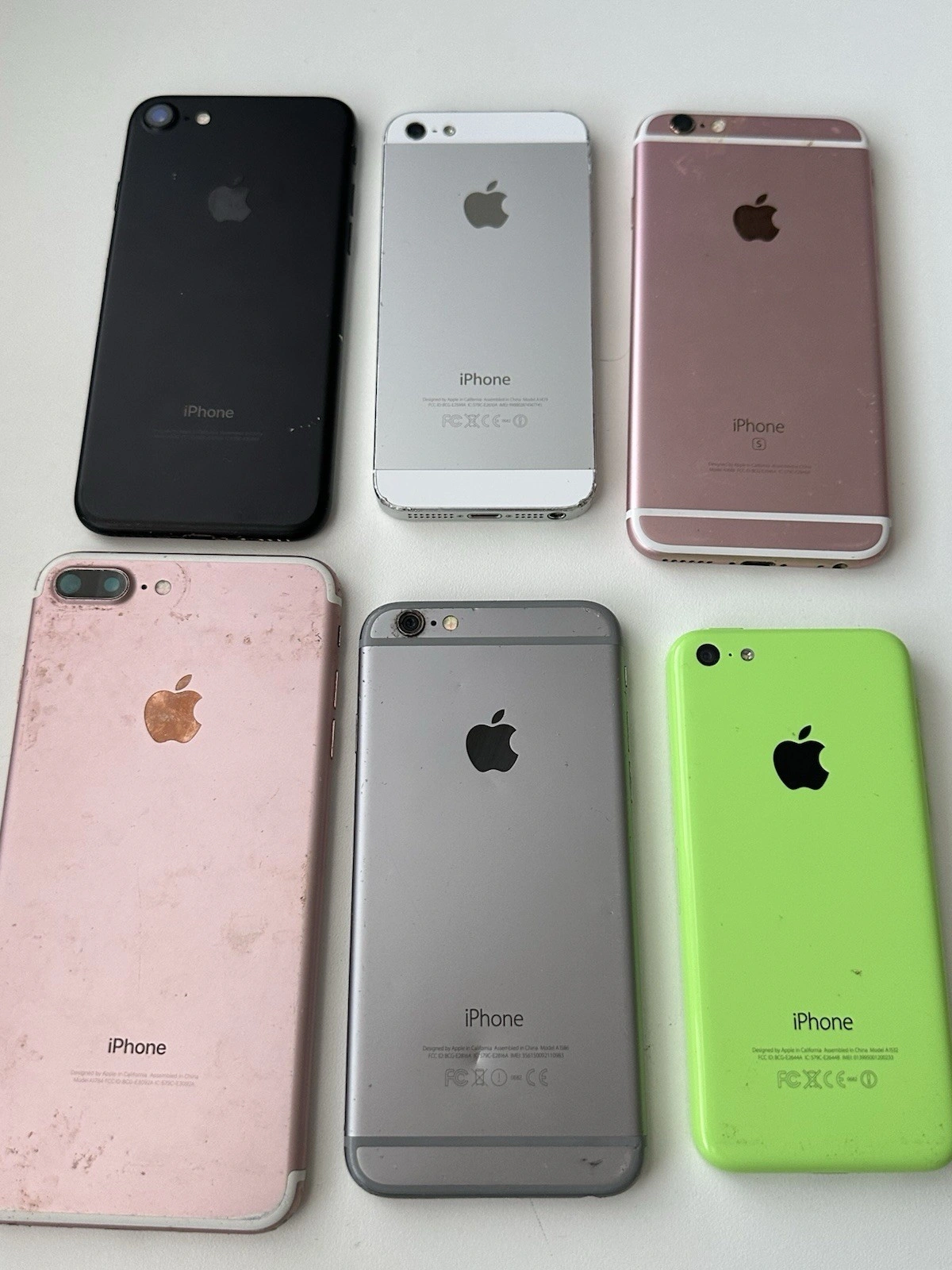 This is a bundle of 6 Apple iPhones. They are for parts or repair and have not been tested. Models are mixed. Some features include: Dual Core Processor, 5.5 in Screen, Rose Gold/Gold color, Apple A9 Chipset, Built-In Memory, Network Unlocked, iOS, 12 MP Camera, 2 GB RAM.