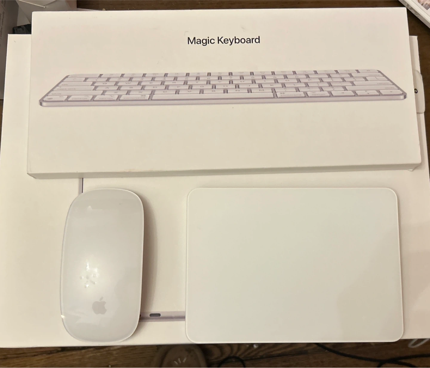 Selling a set of Apple peripherals in great condition! Included are the Magic Keyboard (new in box!) Magic Mouse, and Magic Trackpad, all in their original boxes. Perfect for anyone looking to upgrade their setup or needs a reliable set of accessories for their Mac