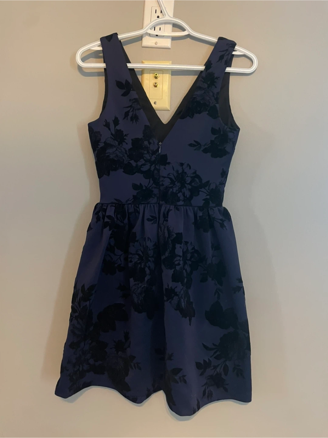 Design Lab Lord & Taylor Navy Floral Dress Size S