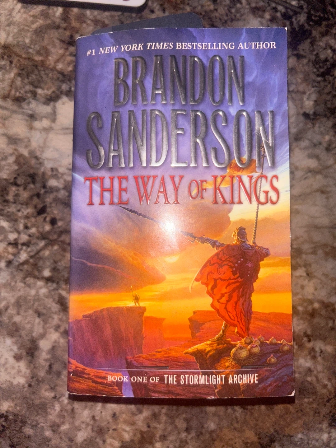 This is 'The Way of Kings', the first book in Brandon Sanderson's The Stormlight Archive series. It's a New York Times bestselling novel. Fans of epic fantasy will enjoy this detailed world-building and character development.