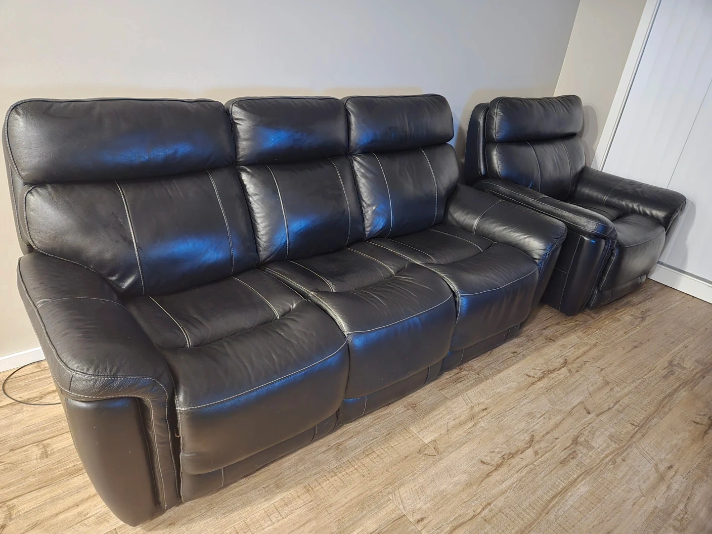 Stallion Leather Dual Power Reclining Sofa - Midnight Black Head & Foot adjustable