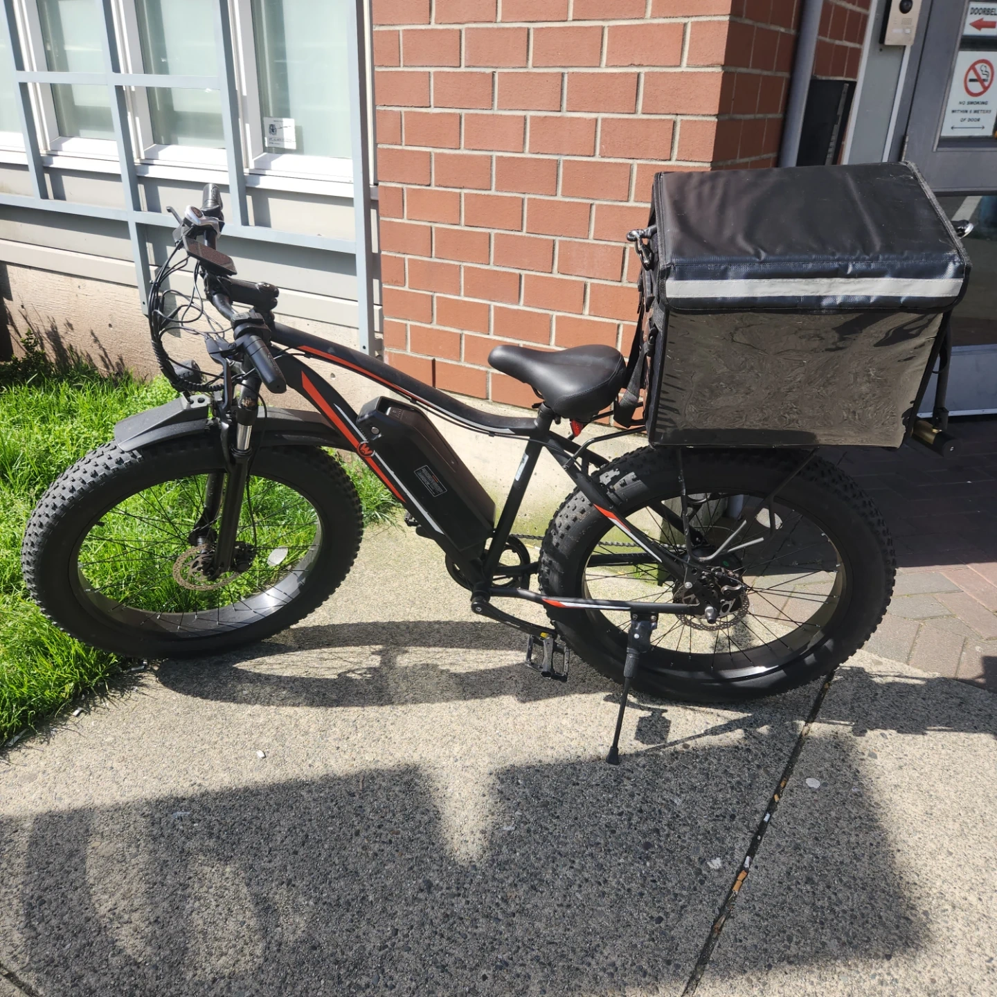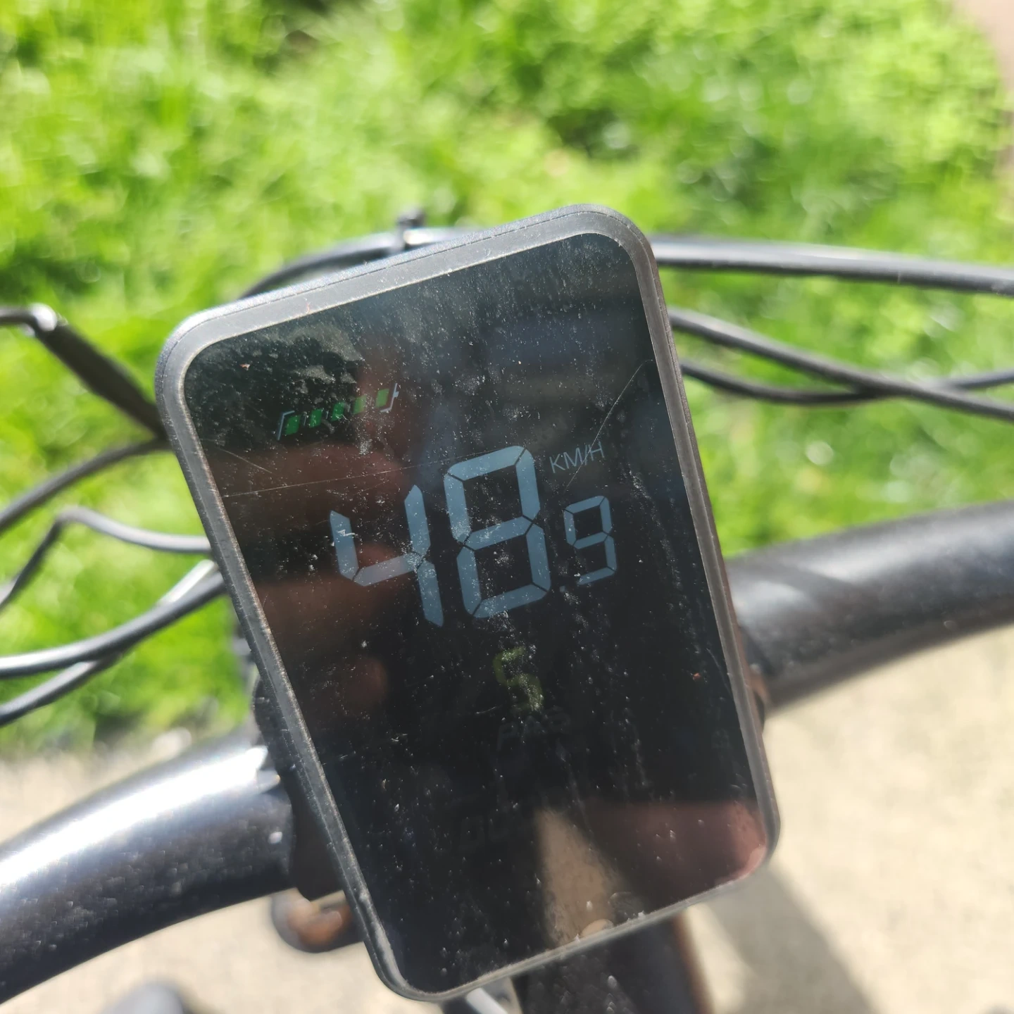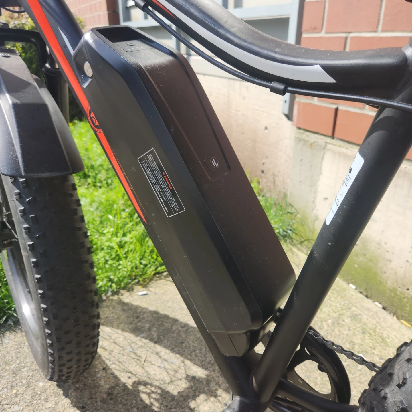 It features a prominent battery pack on the frame and thick, rugged tires suitable for various terrains. This does not come with box. 45 kph