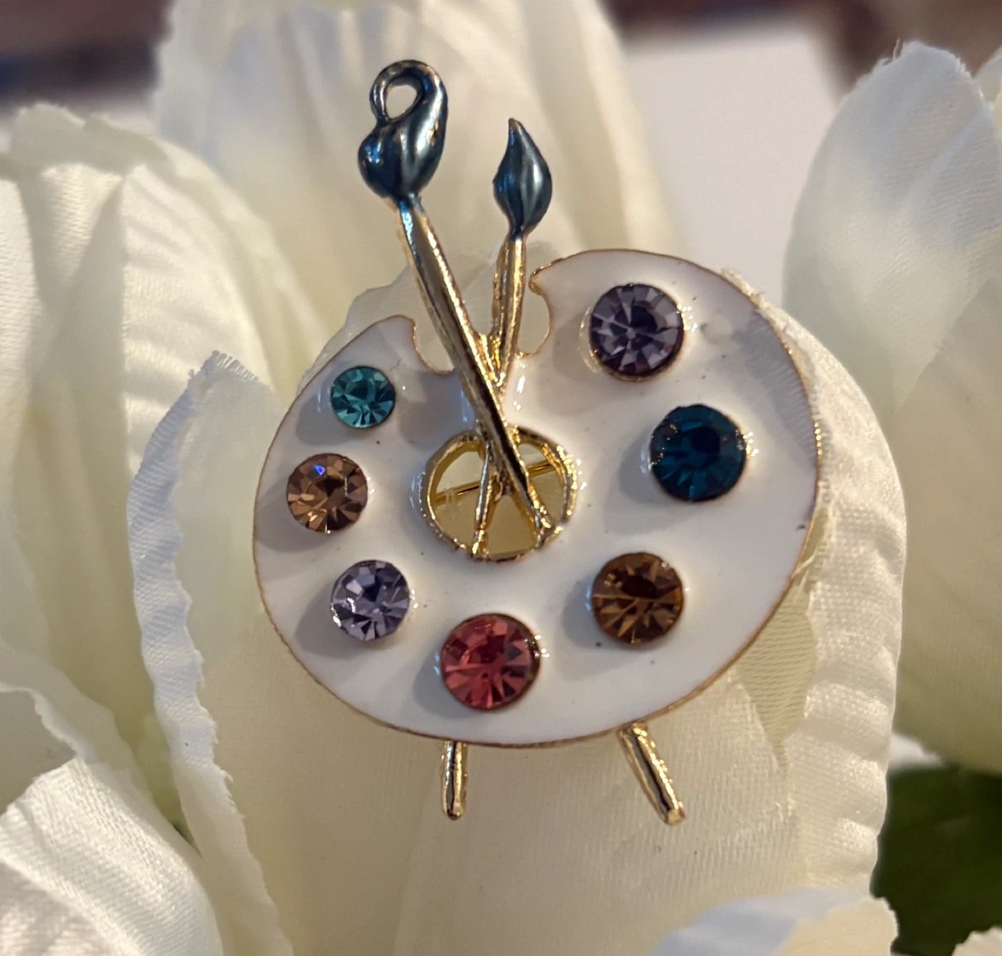 Beautiful Art Palette Brooch with Colorful Gems!