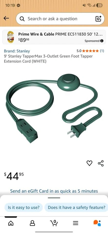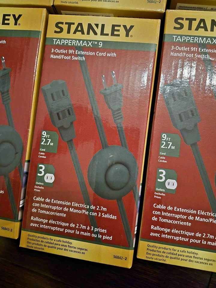 Brand New 9 FT Stanley TapperMax 3-Outlet Foot/Hand Switch Exten