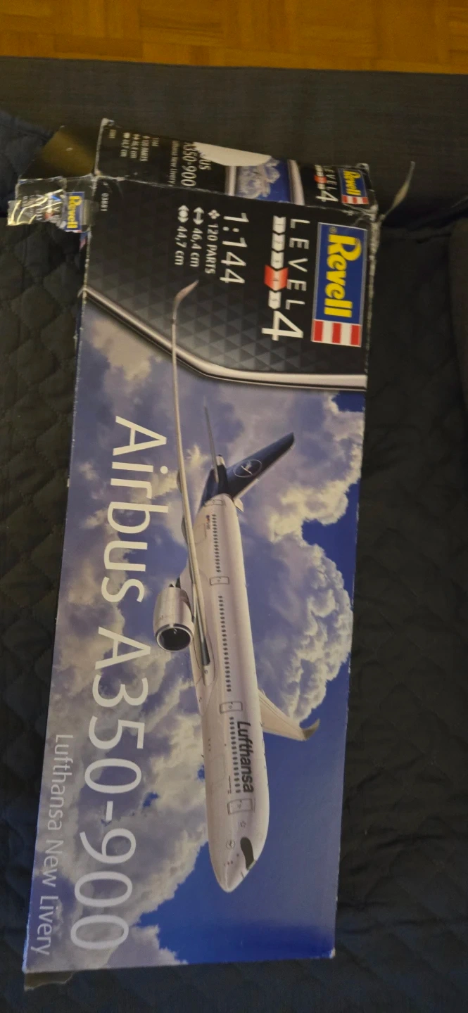 An Airbus A350 -900 Lufthansa New livery. All parts are included but no stickers. Box is damaged. Bought around 2023-2024. (CASH ONLY)