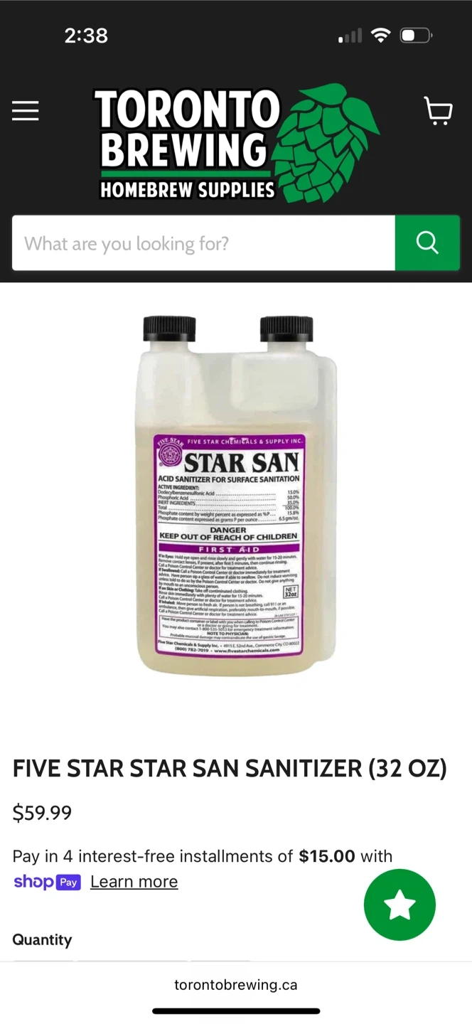 Selling a 32 oz bottle of Five Star Star San Sanitizer. It's an acid sanitizer perfect for surface sanitation. Used in home brewing for wine, beer and other fermented beverages.