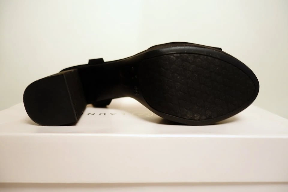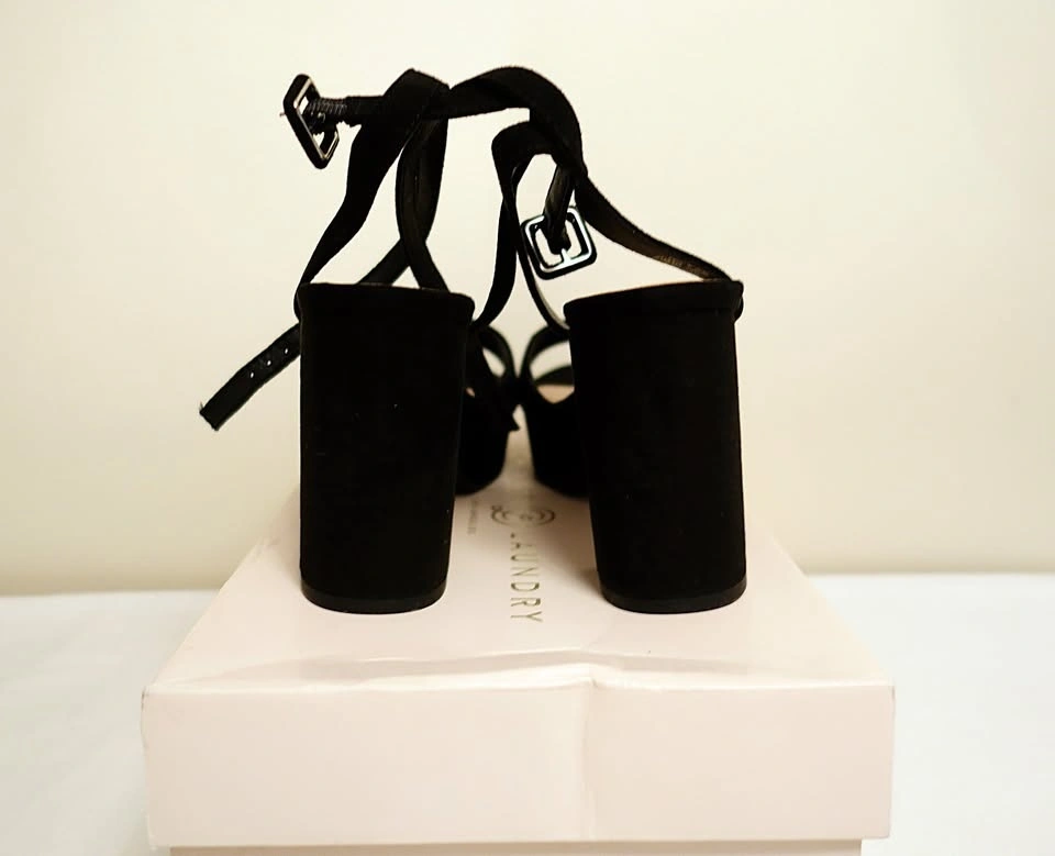 Brand new in box, never been worn. Women's size 8. Black micro suede exterior. Textile fabric. Leather sole. Block heel. 1.5 inch platform height. Suede outer material.