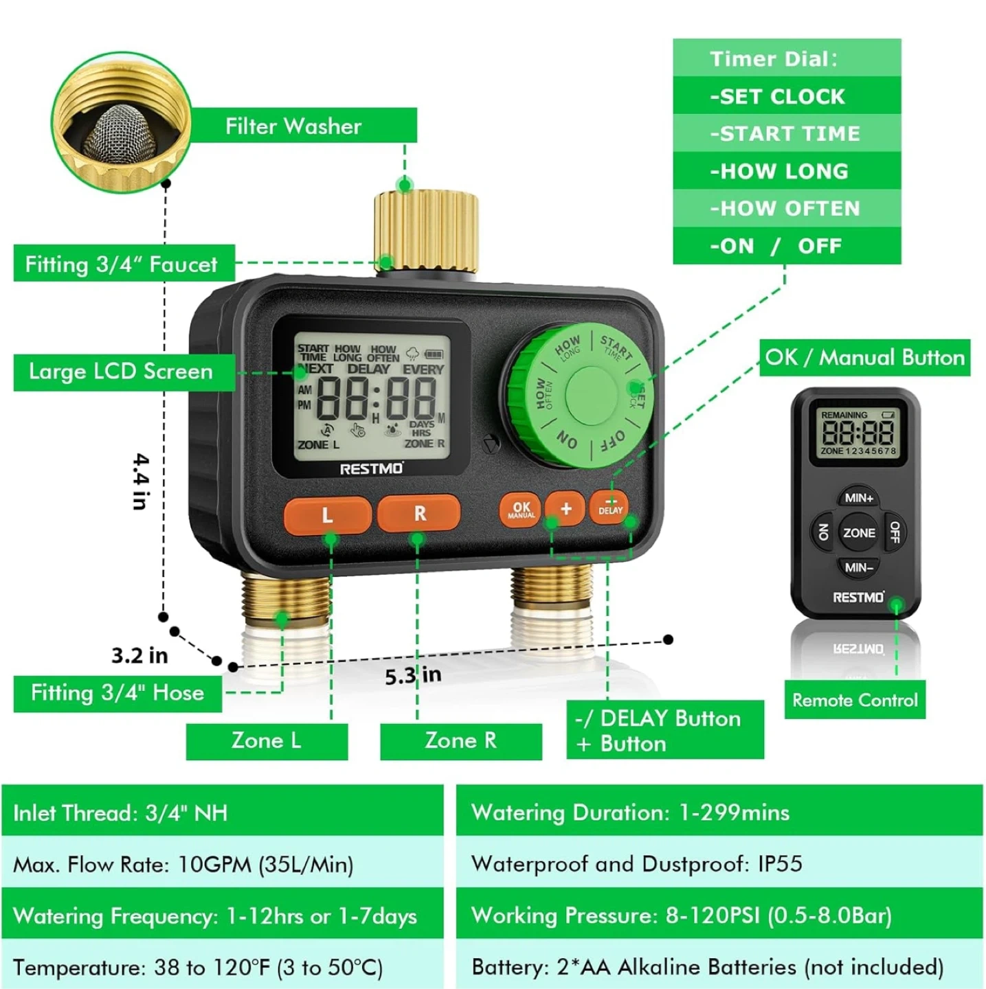 π± NEW! RESTMO 2-Zone RF Remote-Controlled Water Timer π±
