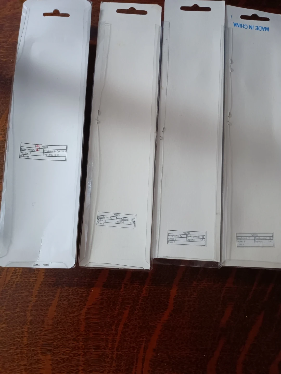 Four fishing lures from A Canadian Company, perfect for your next fishing trip. These lures come in various colours including blue, gold, and silver. Each lure is designed for effective fishing. They're ready for casting!