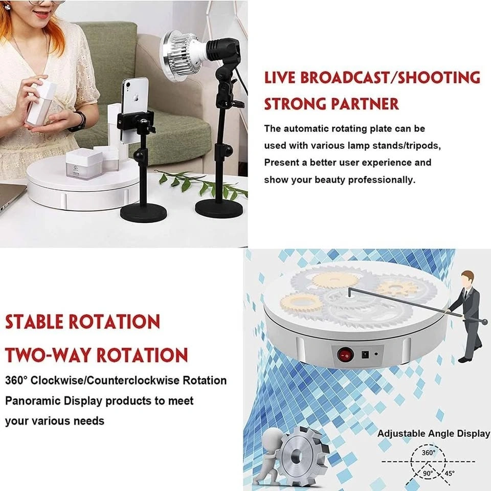 Professional electric rotating turntable for product photography and display. Perfect for creating 360° product photos and videos. Features remote control operation, smooth 360° automatic rotation, and a strong 100kg capacity. Ideal for product photography, videos, and displays. Compact 22cm platform size. Great for e-commerce sellers, photographers, collectors, and product displays. Pickup available in Toronto / GTA.