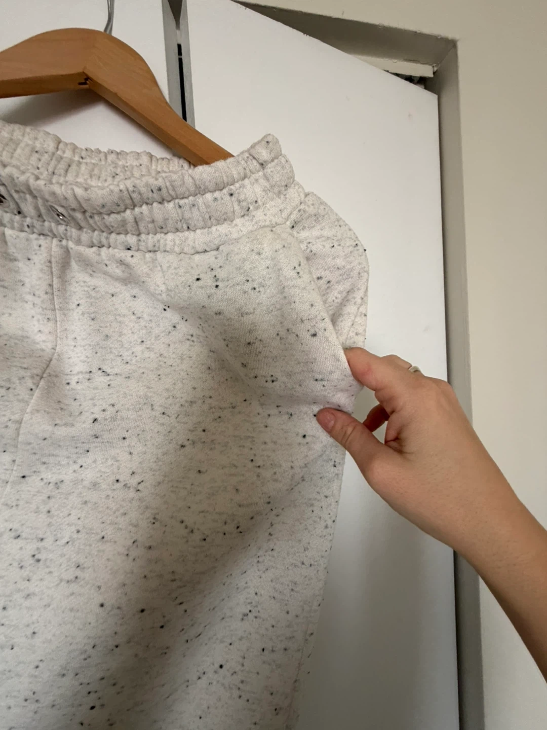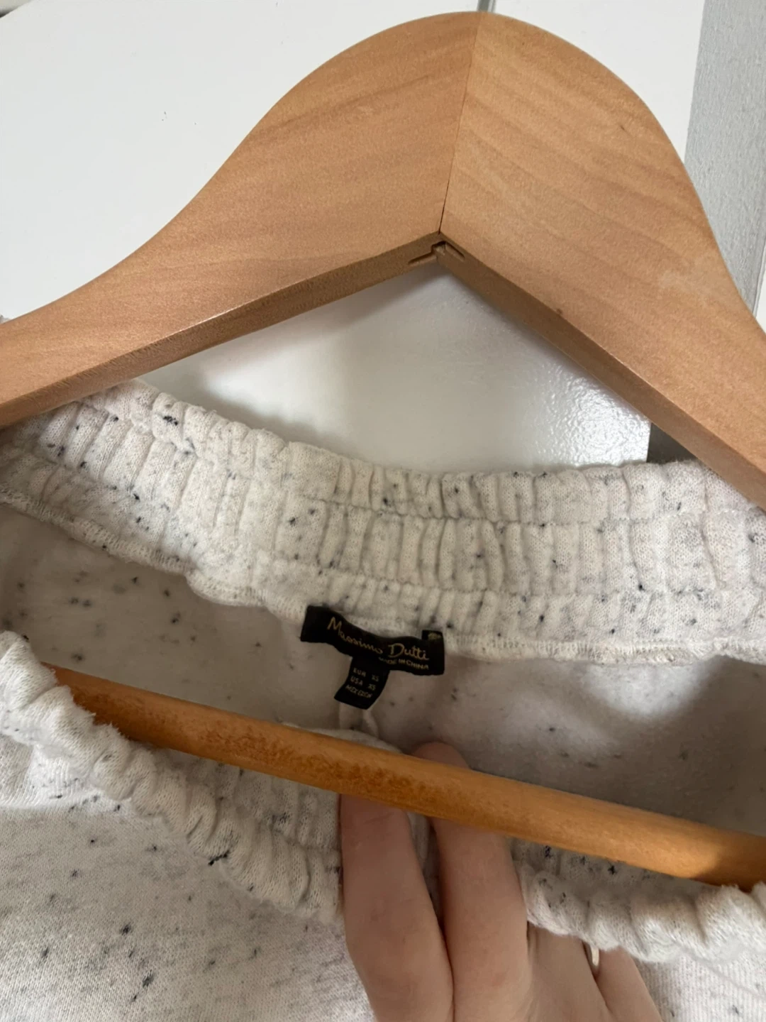Massimo Dutti lounge pants with an elastic waistband and pockets. Speckled grey and white knit fabric. Size S