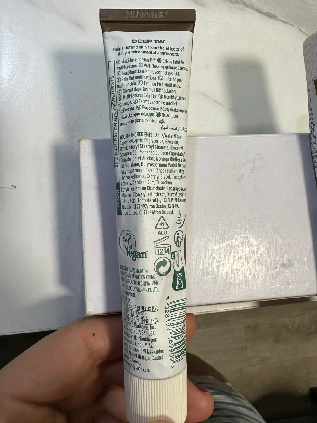 This is a 5-pack of The Body Shop Second Skin Tint in the shade Deep 1W. Each tube contains 30mL (1.0 US Fl. Oz). It's a multi-tasking skin tint that helps defend skin from daily environmental stressors. It's made with 98% natural origin ingredients.