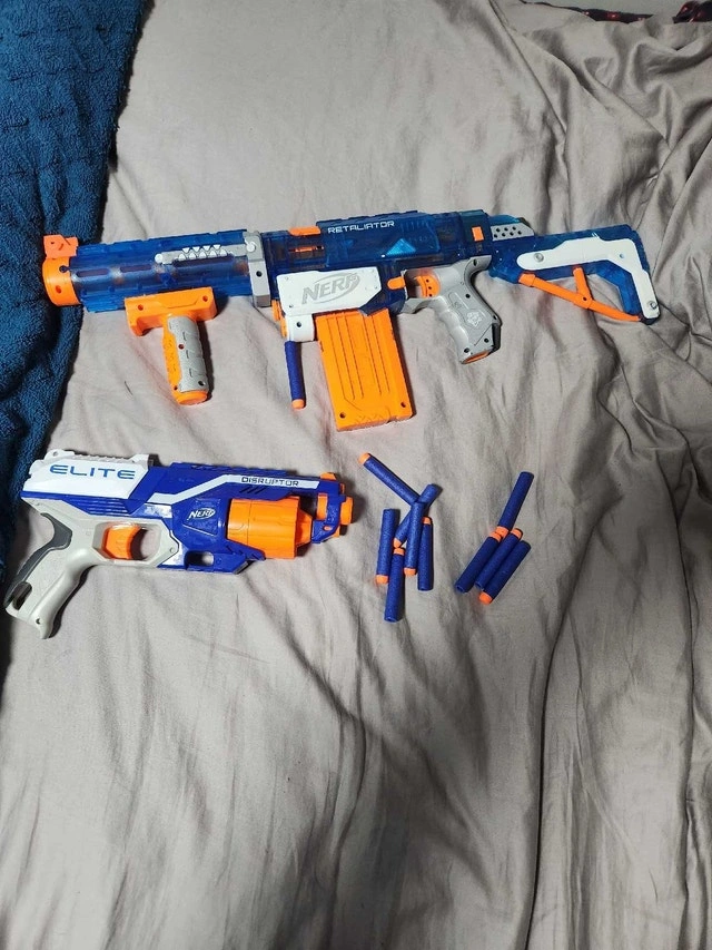Buy & SellNerf Retaliator and Disruptor with 13 DartsNerf Retaliator and Disruptor with 13 Darts$25Selling a Nerf Retaliator and a Nerf Disruptor, both in good condition along with 13 darts.WHERE TO MEETCheck LocationView MapSELLEREliasThorncliffe200 reviews0 chats·0 favorites·1 viewsSEND CHAT TO SELLERHi Elias! I’m interested in your listing.Hi Elias! I’m interested in your listing.Get the Karrot app to chatSign In to chat