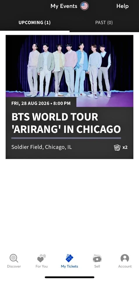 Buy & SellBTS tickets world tour Ariran’gBTS tickets world tour Ariran’g$400Two tickets for BTS world tour August 28 in Chicago, section 214 row 15. $400 each. Willing to show proof of purchase.WHERE TO MEETCheck LocationView MapSELLERJhonSouth Farmingdale373 reviews0 chats·0 favorites·5 viewsSEND CHAT TO SELLERHi Jhon! I’m interested in your listing.Hi Jhon! I’m interested in your listing.Get the Karrot app to chatSign In to chat