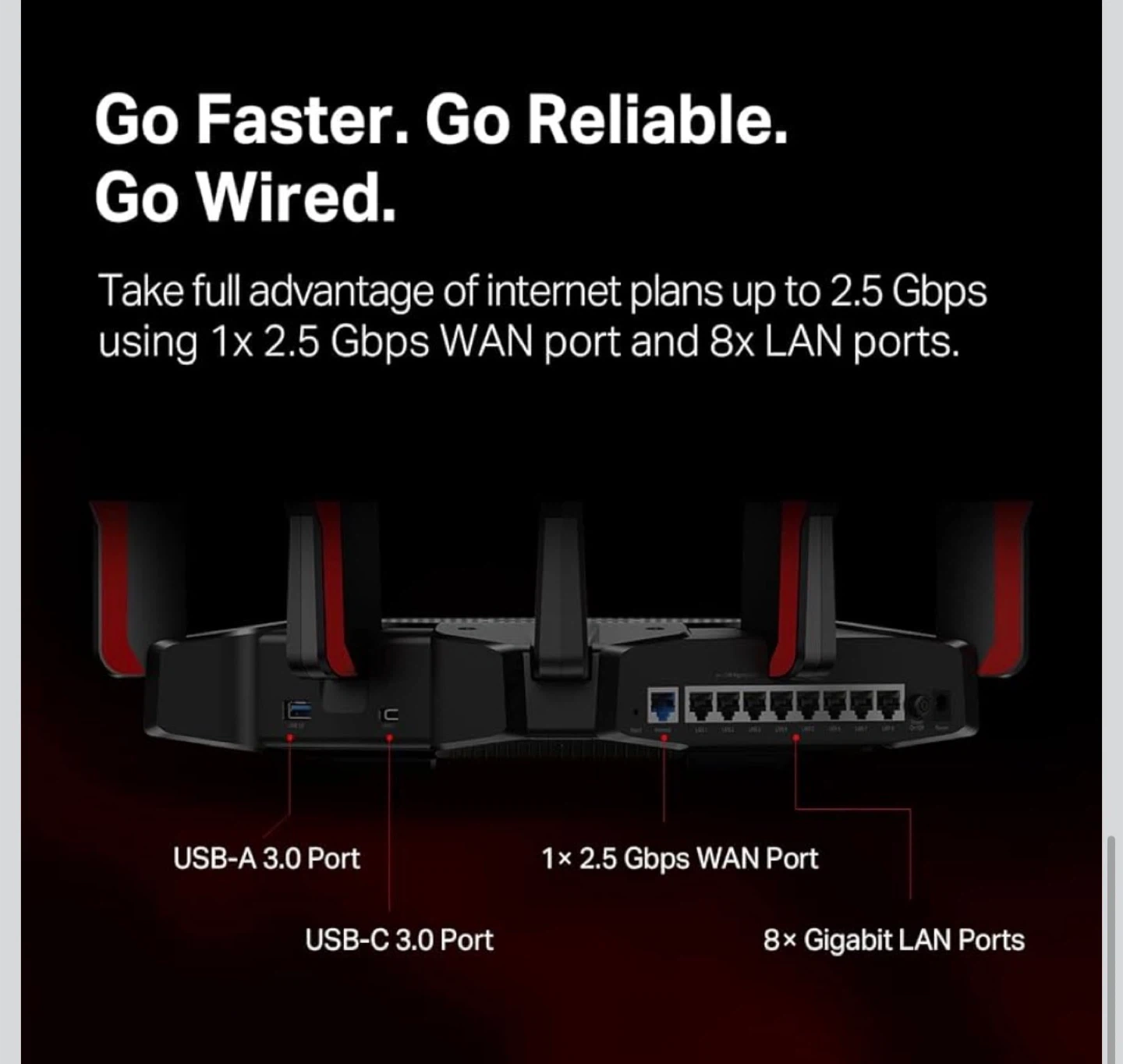 Ultra Connectivity: 1 2.5Gbps WAN port + 8 Gigabit LAN ports and 2 USB ports ensure max flexibility and boosted throughput