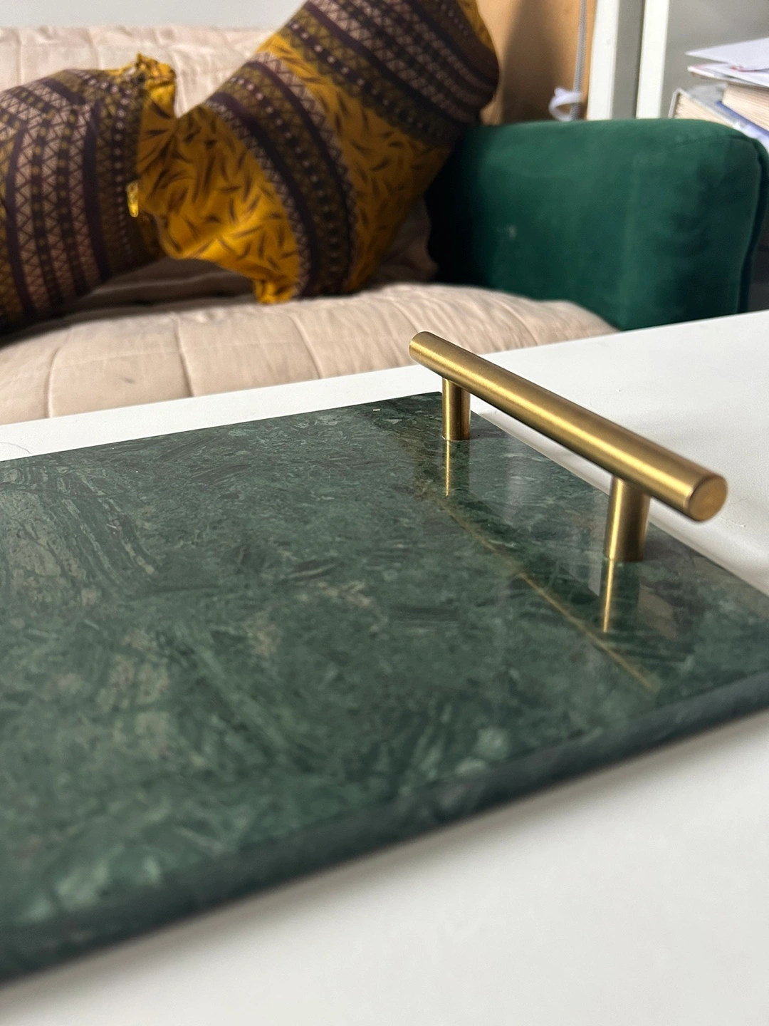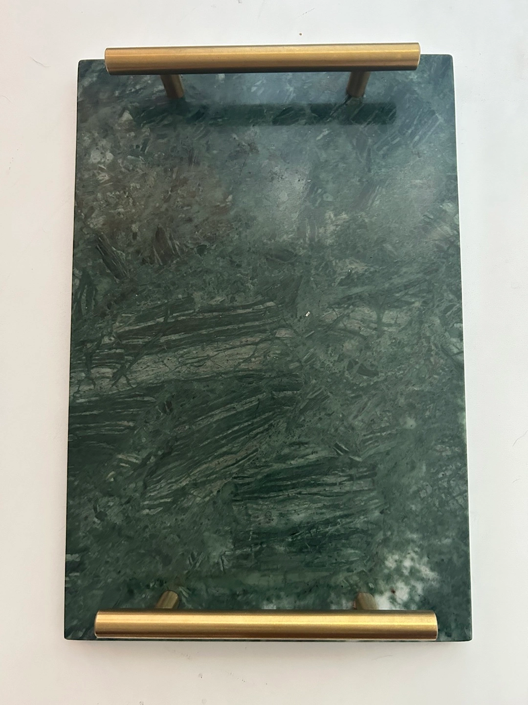 Green Marble Tray with Gold Handles