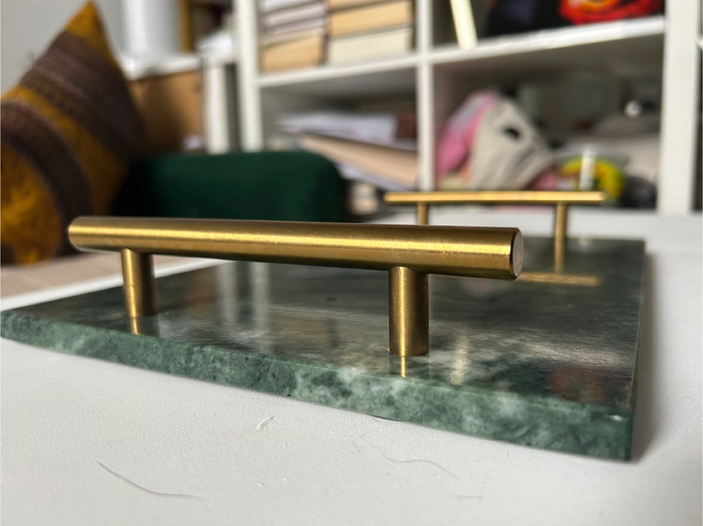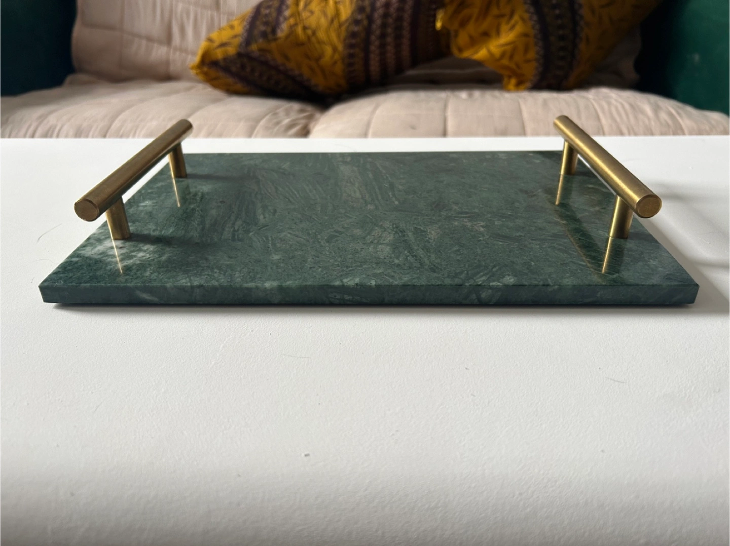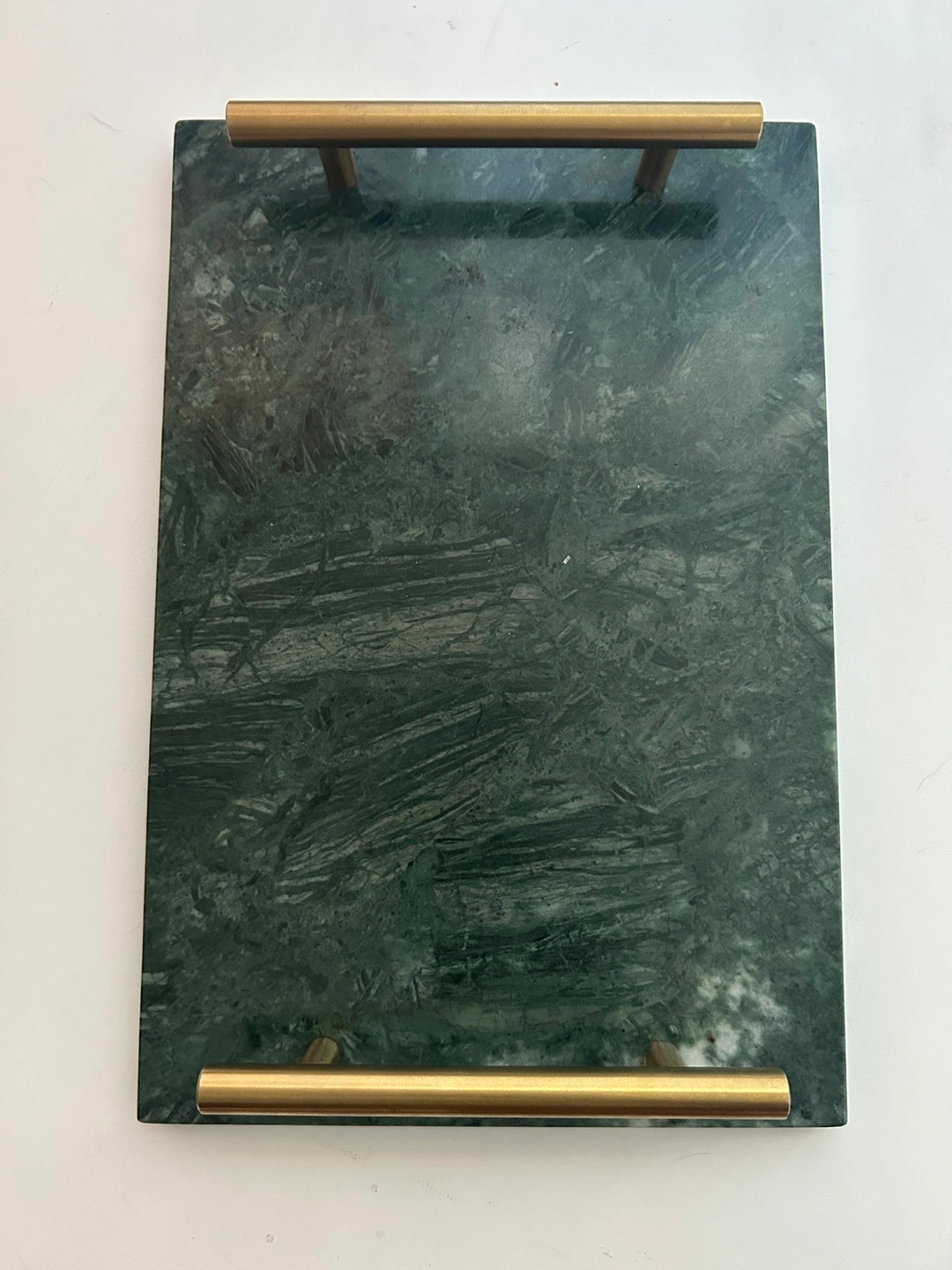 Green Marble Tray with Gold Handles