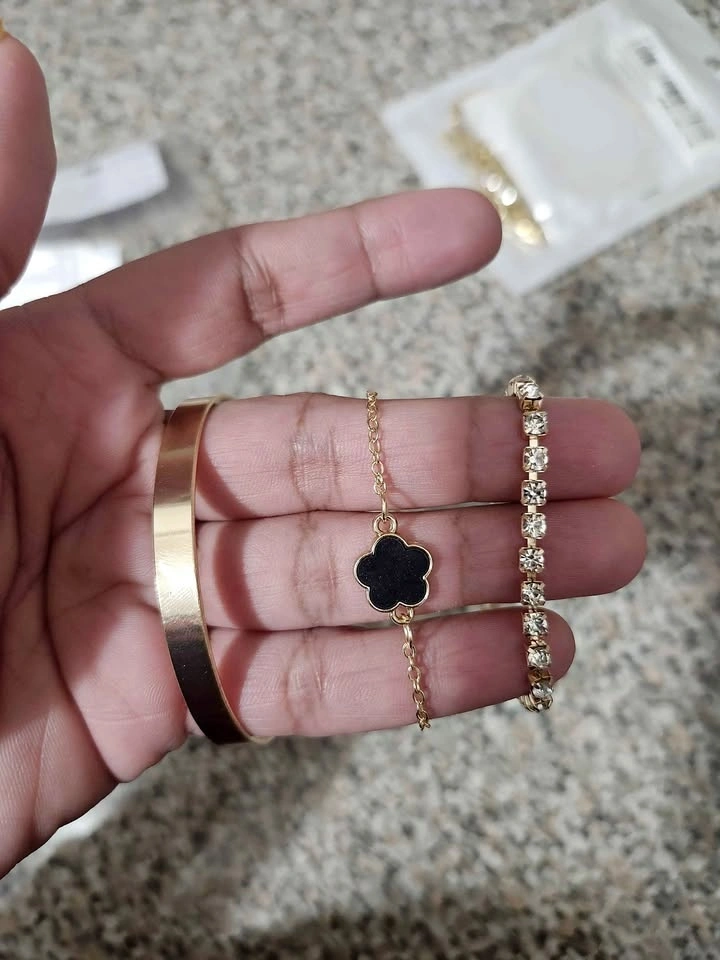3pcs Minimalist Rhinestone Clover Bracelet Set - $7