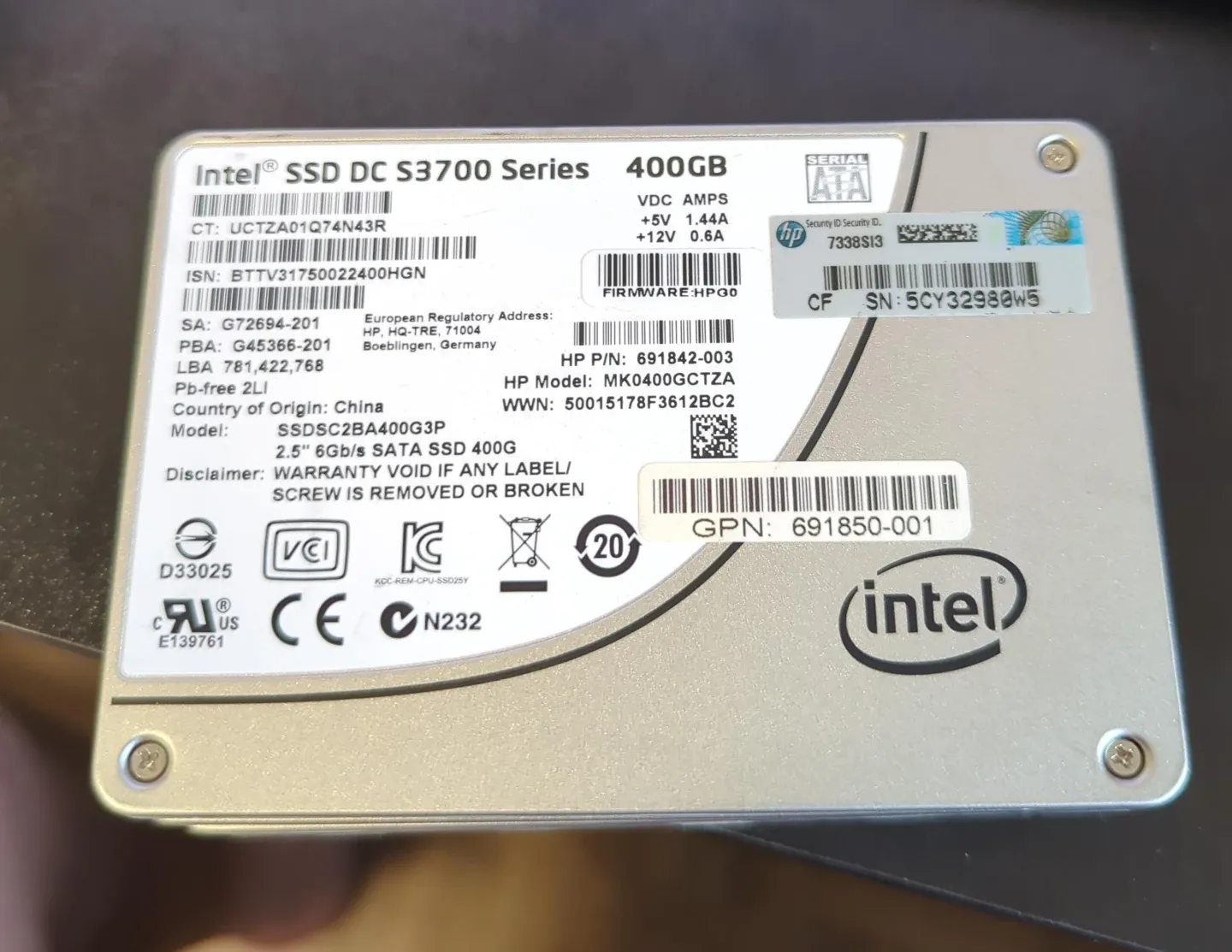 This is an Intel SSD DC S3700 Series drive with 400GB storage. It's a 2.5" 6Gb/s SATA SSD. It's suitable for high-performance computing needs.