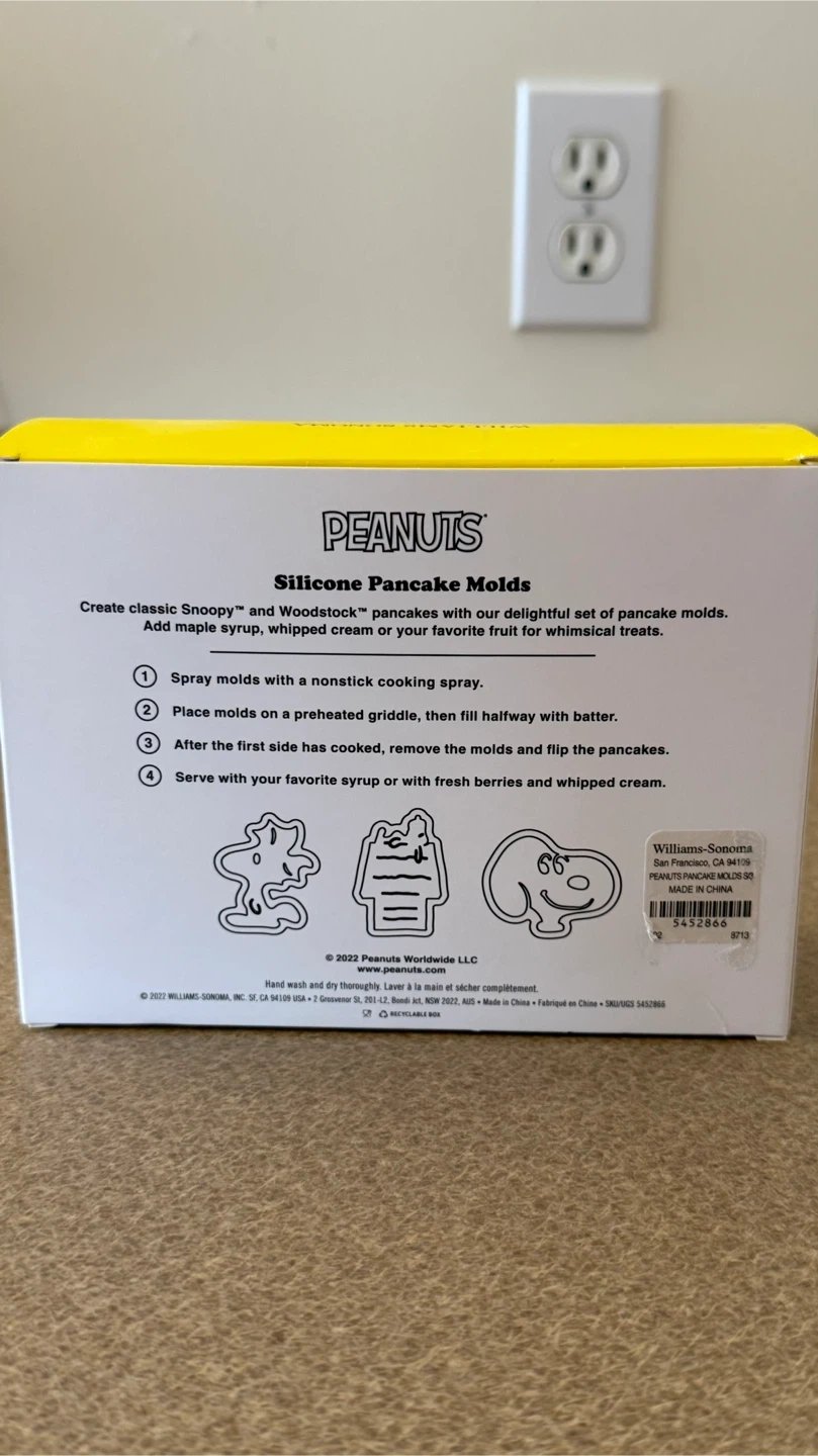 Create classic Snoopy™ and Woodstock™ pancakes with this set of 3 silicone molds. Made by Williams Sonoma. Use them for fun breakfast treats!