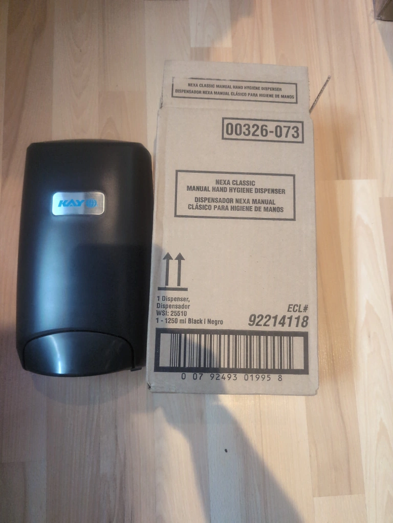 Selling a Kay Nexa Classic manual hand hygiene dispenser in black! It comes with the original box. It holds 1250 ml of soap. Perfect for a business or home