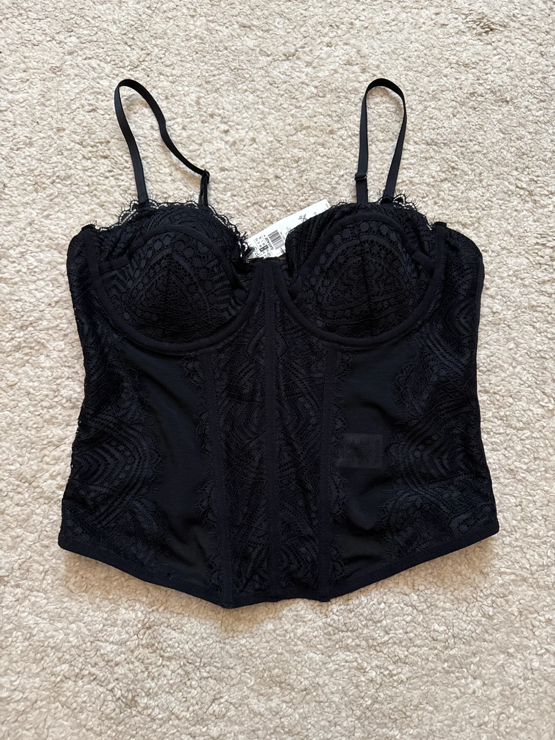 Selling a brand new Garage corset top! It's black with delicate lace detailing. Never been worn and still has the tags attached. Perfect for adding a touch of elegance to any outfit!