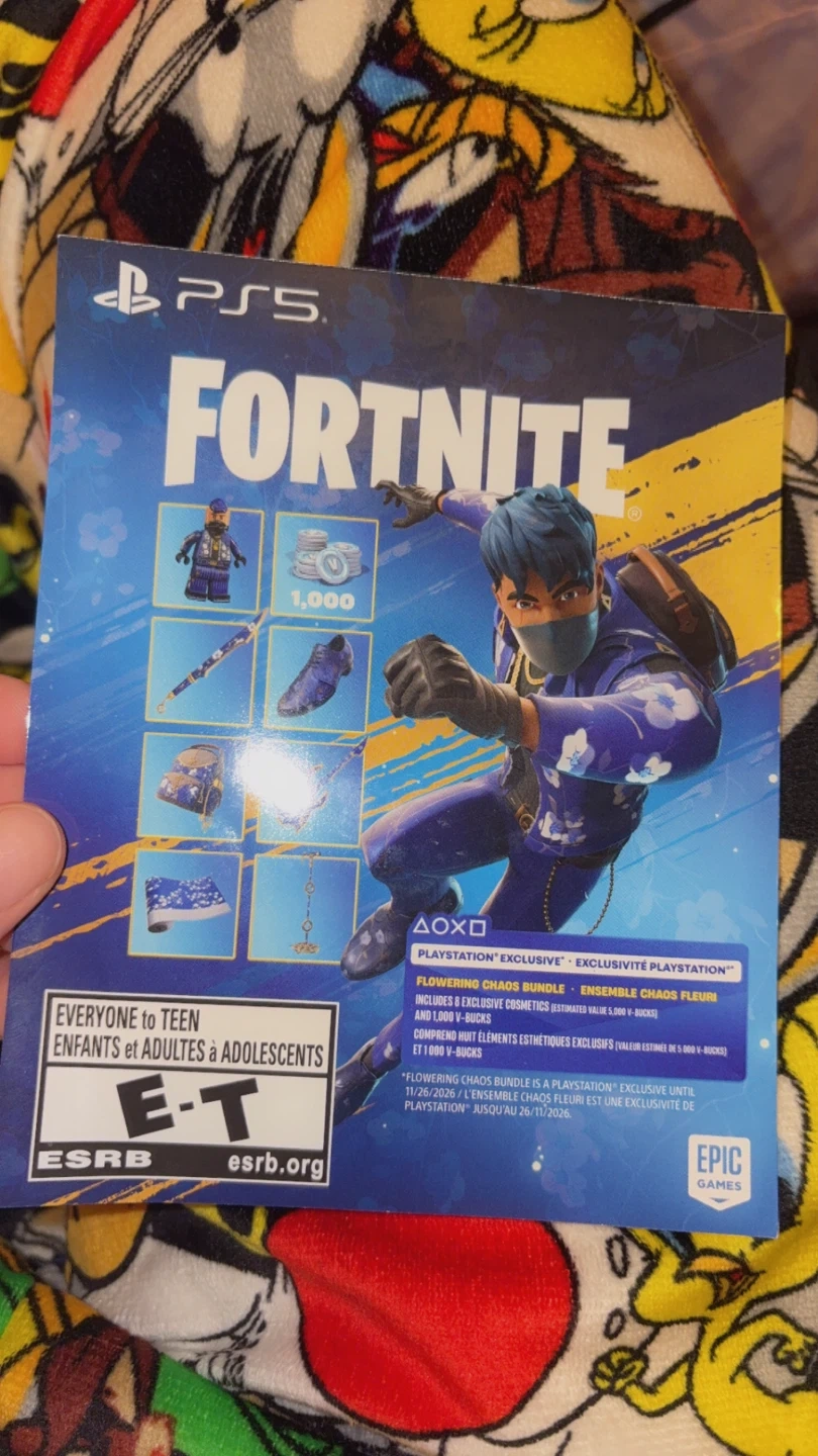 Selling a code for the Fortnite Flowering Chaos Bundle, exclusive to PlayStation! This includes 8 exclusive cosmetics and 1,000 V-Bucks. The bundle is a PlayStation exclusive until November 26, 2026