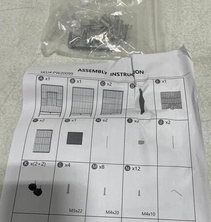 This large bird cage is made of high-quality, low-carbon, rust-proof and waterproof steel, with guaranteed quality and durability. Covered with non-toxic hammer-pattern paint, giving birds a healthier and safer living environment. The steel frame is stable, with four caster wheels at the bottom, so you can move it anywhere you like. Our parrot cage sits on four heavy duty rolling casters that roll in all directions smoothly. A slide-out tray covered with waterproof paint can be removed and cleaned with water. A grate between birds and the tray prevents pets from walking directly on droppings. Steel wires are evenly spaced for safety. Simple assembly is required. The cage comes with all necessary hardware and detailed instructions.
