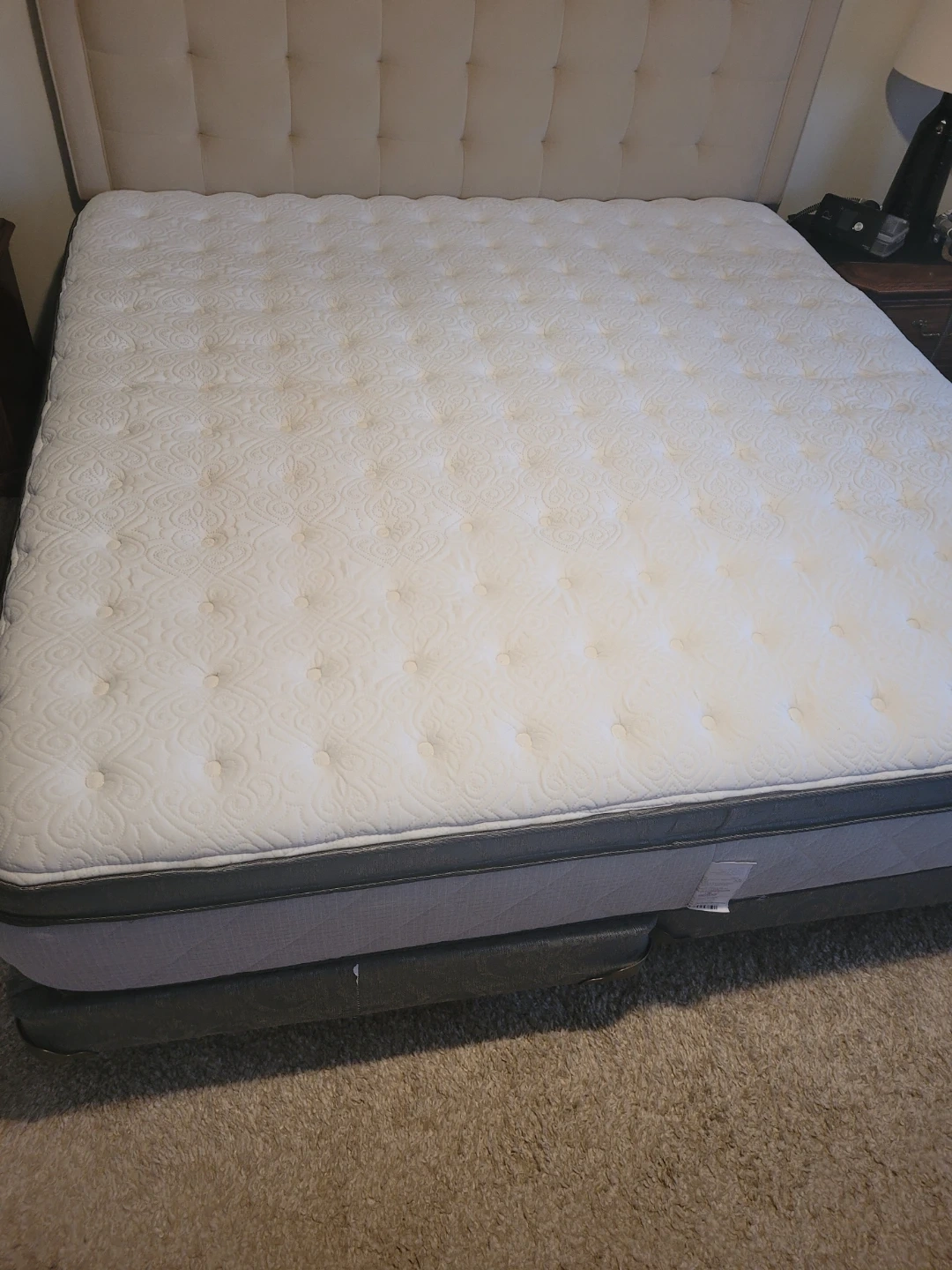 -Sealy posturepedic KING mattress with pillow top (13" high). Have always had a mattress protector on bed, very clean